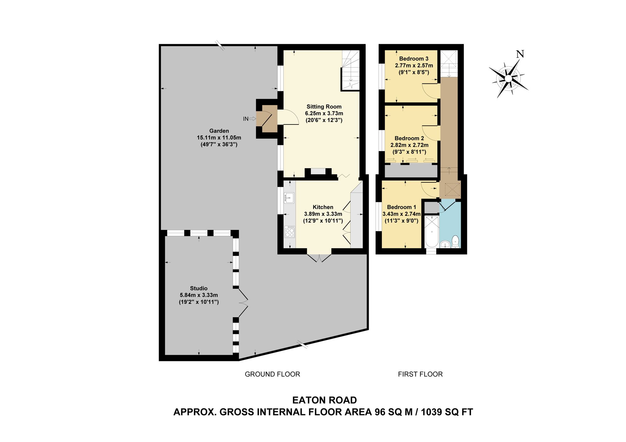 Upstairs, there are three well-proportioned bedrooms: two comfortable doubles and a generous single, all served by a family bathroom on the first floor.
