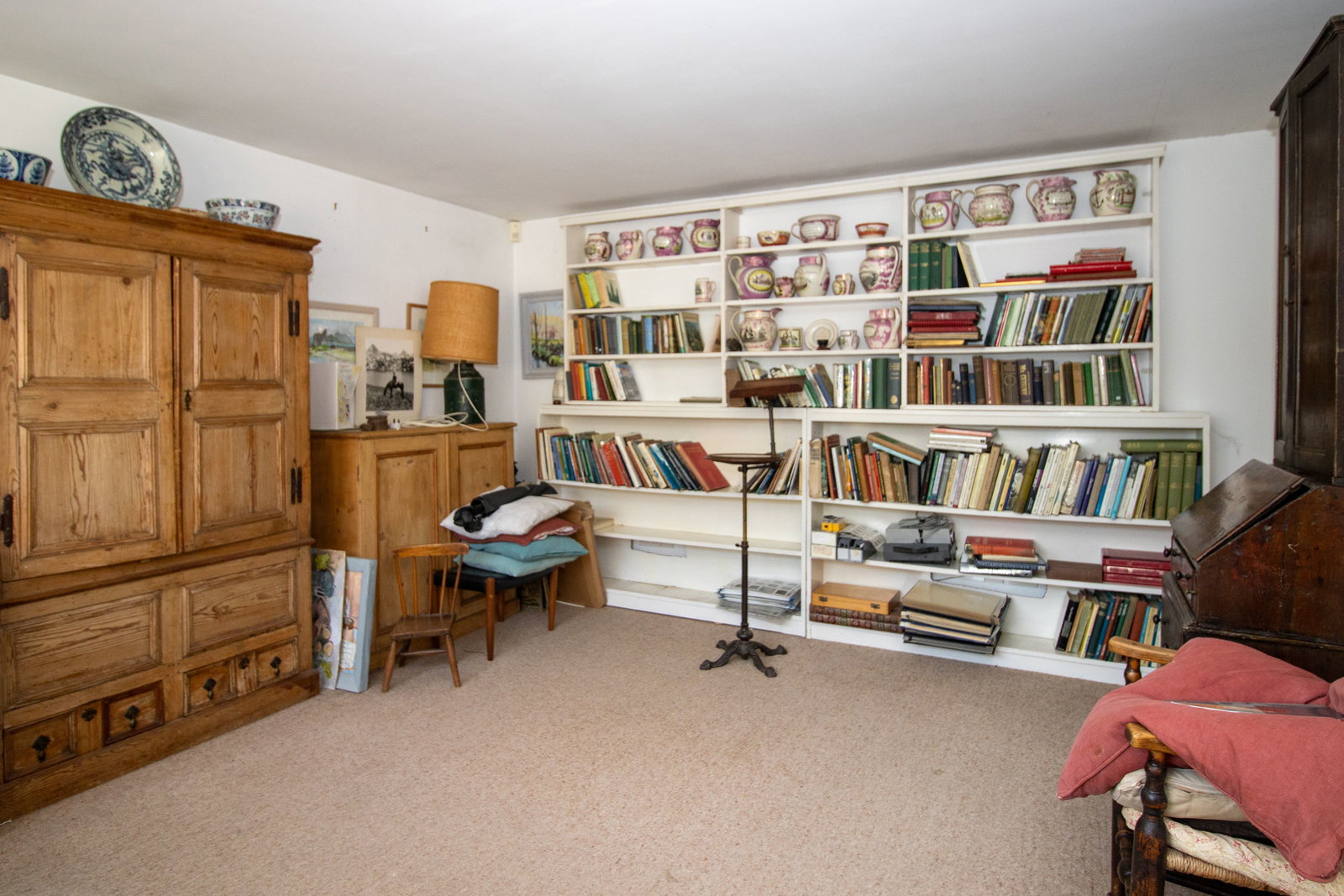 Approaching the house across the driveway, the front door opens to a spacious entrance hall, with stairs to the first floor, and a door with steps down to a long, dry cellar. The drawing room has sash windows overlooking the magnificent garden, and a fireplace with an open fire. A door links through to the well-proportioned dining room, with another door back onto the entrance hall. In addition, there is a kitchen with a walk-in larder, a utility room, store room, bathroom and sitting room on the ground floor.