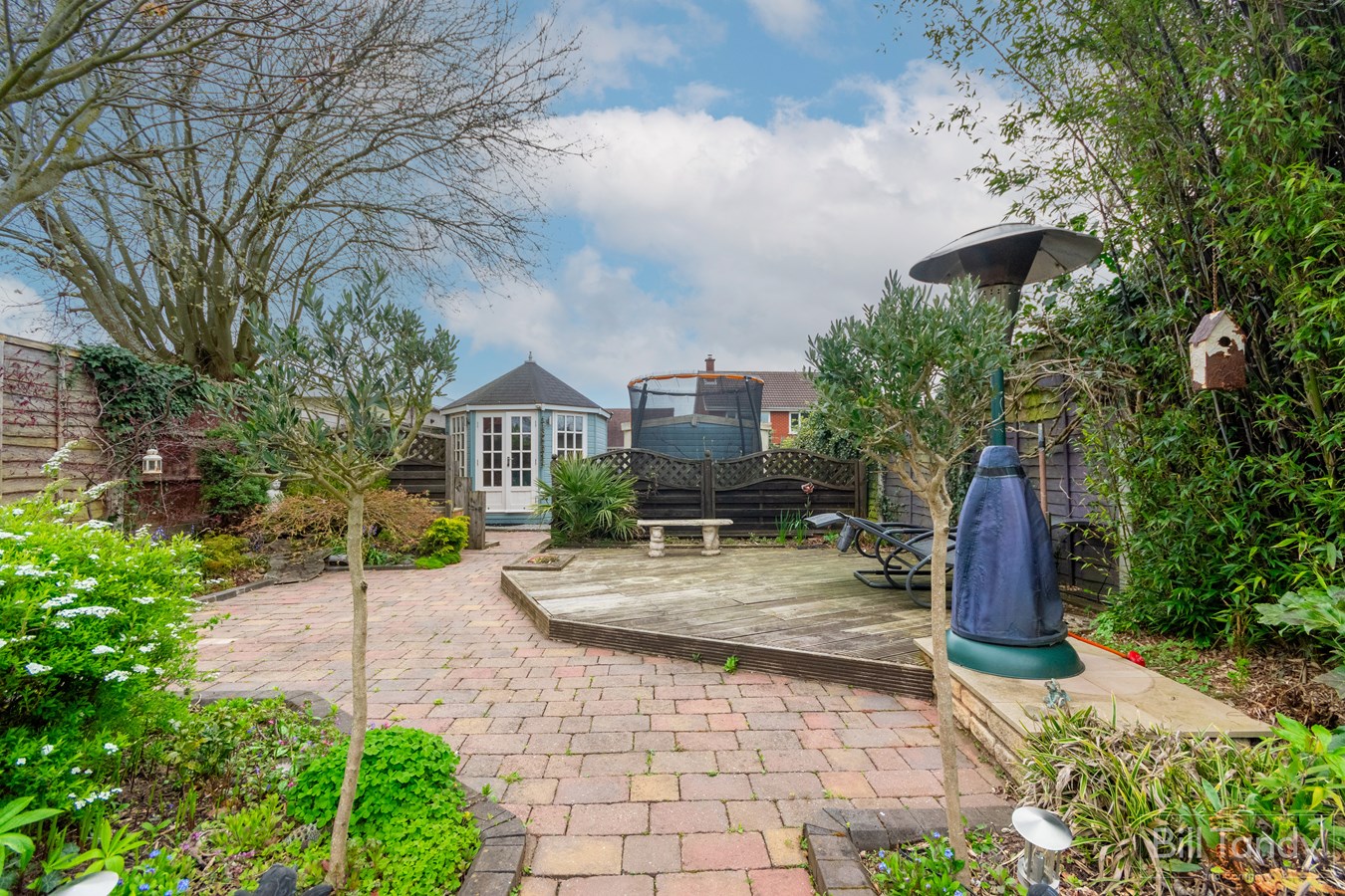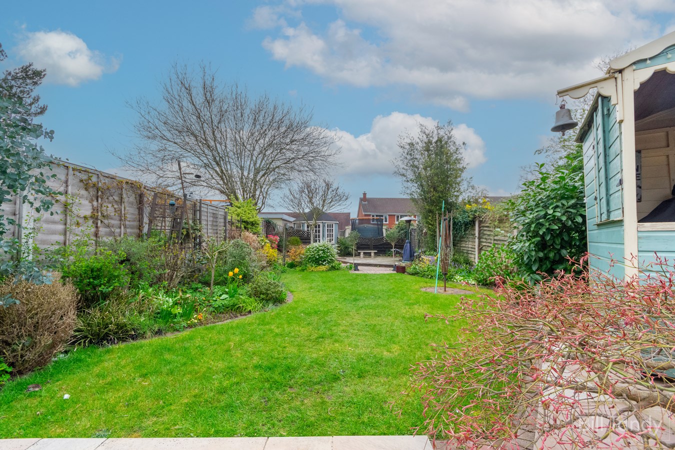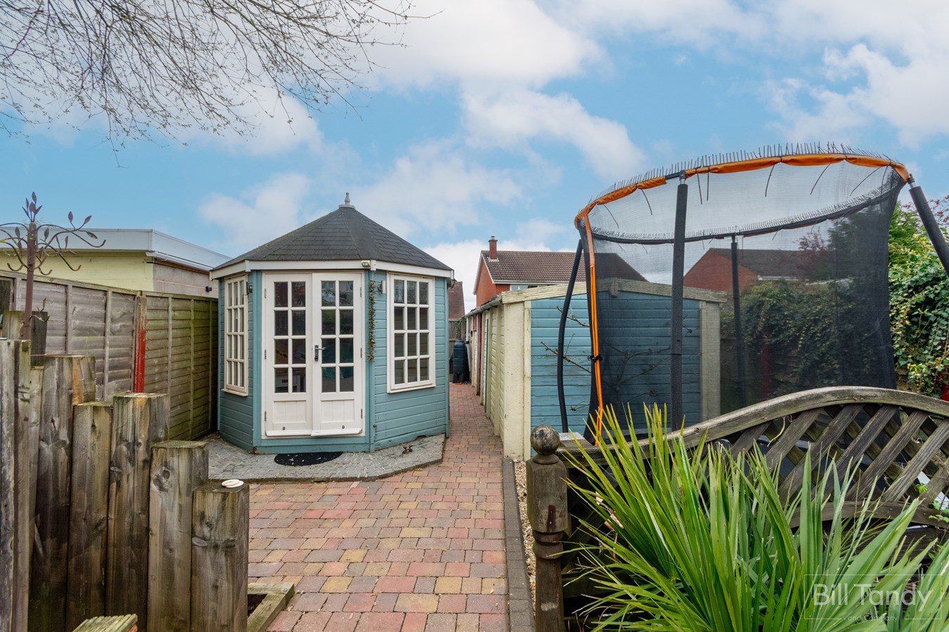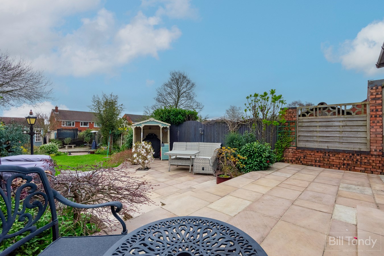 The property is set back from the road behind a tarmac driveway with block paved edging providing parking for up to three vehicles and a timber gate access to the side leading round to the rear. The true joy of this property is the superb rear garden having a lovely sandstone paved patio seating area with inset ornamental trees and corner raised flower beds leading to the shaped lawn having shaped bedding plant areas with block paved edging, further block paved seating area, timber decking, half height decorative fencing partitioning off the rear part of the garden having a further block paved area, hardstanding for good sized summer house and a concrete sectional garage now used as a storage shed. There are fenced boundaries, various lighting, power and water points for ease of maintenance.