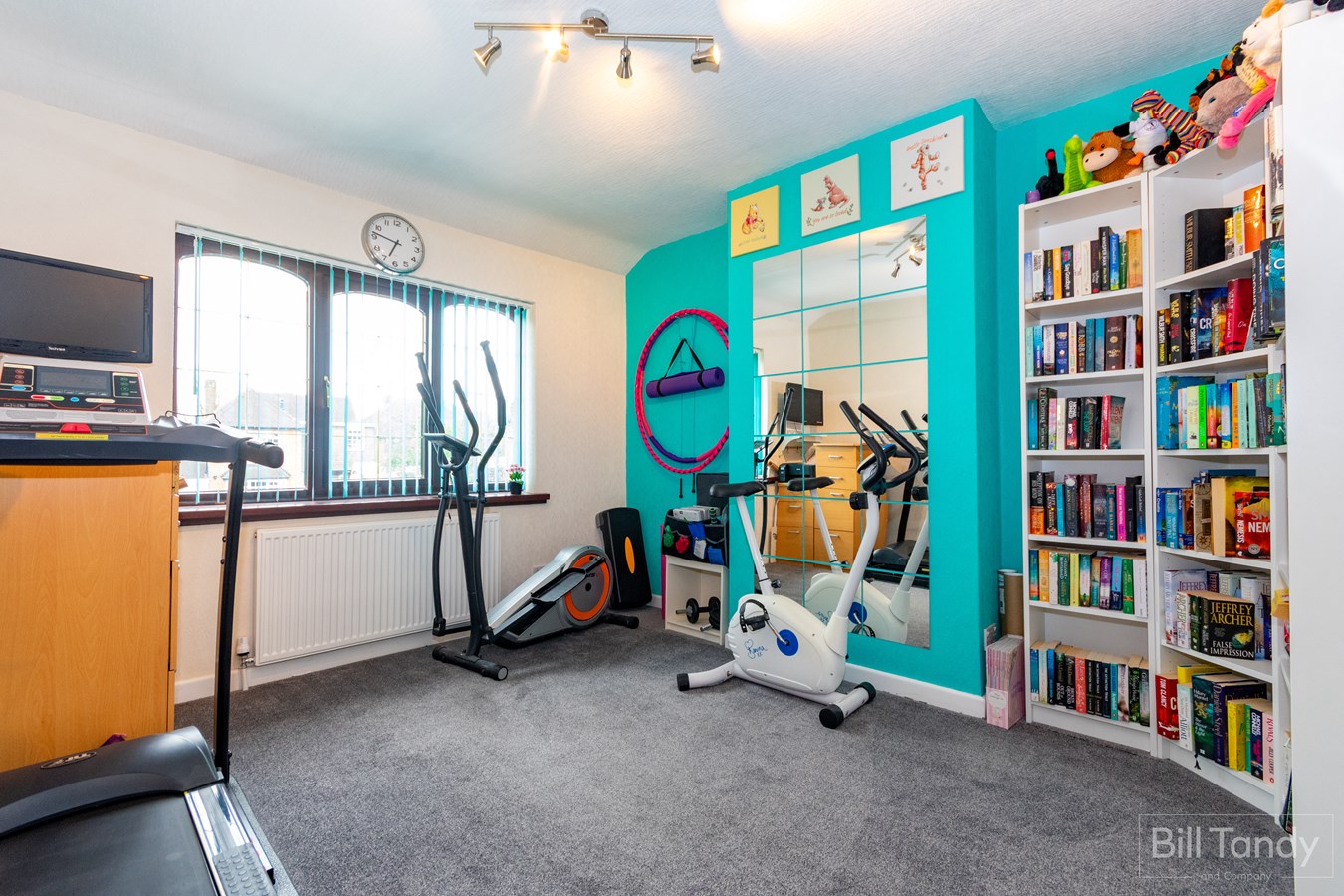 3.60m x 3.30m (11' 10" x 10' 10") currently used as a gym ad having ceiling light point, radiator, UPVC double glazed window to front and loft access hatch with pulldown ladder leading to a fully boarded insulated loft with power and light.