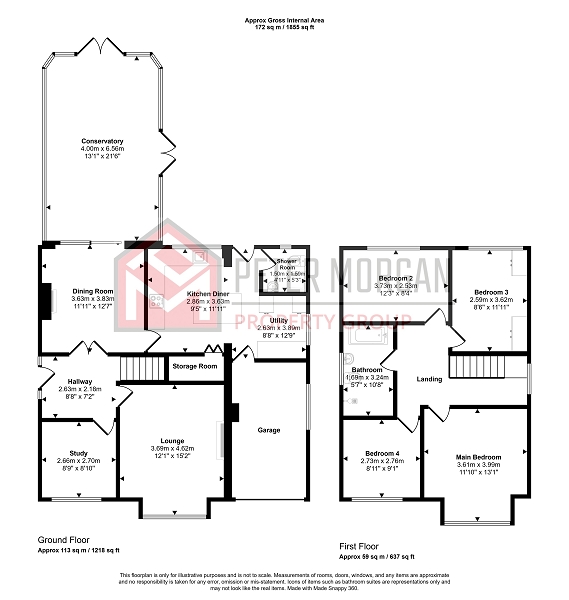 The layout of the property includes an inviting entrance hall, a study, a spacious lounge, a second lounge/dining area, an orangery, and an open-plan kitchen with a breakfast area and pantry. Additional features include a utility room, a shower room, and access to the integral garage. The first floor offers a landing, four double bedrooms, and a family bathroom.