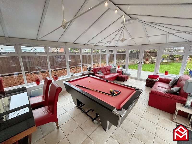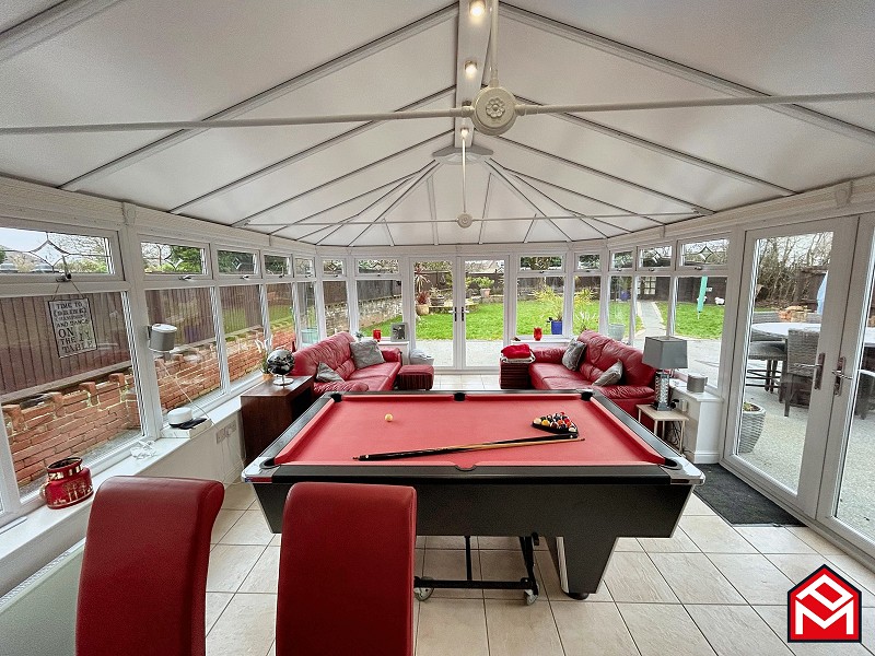 UPVC double-glazed sliding doors to orangery, newly fitted LVT flooring, plastered walls and ceiling, radiator.