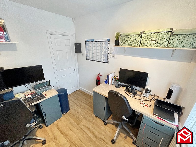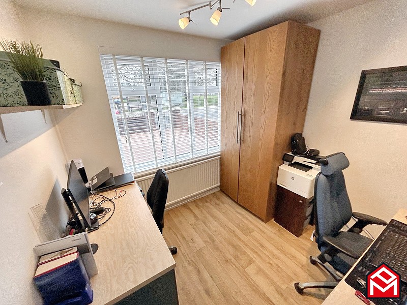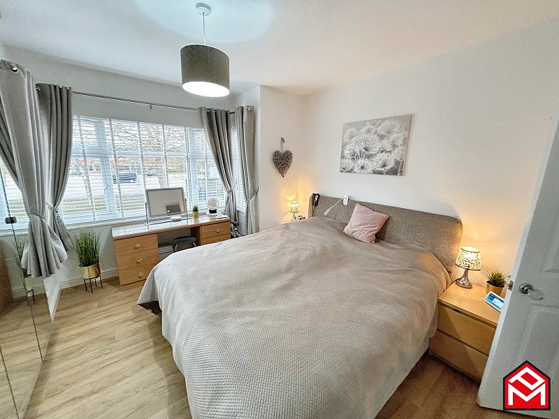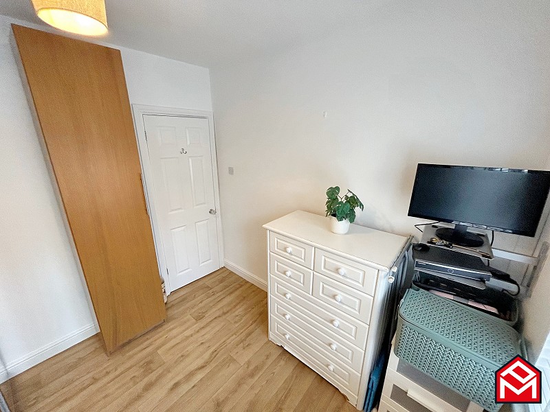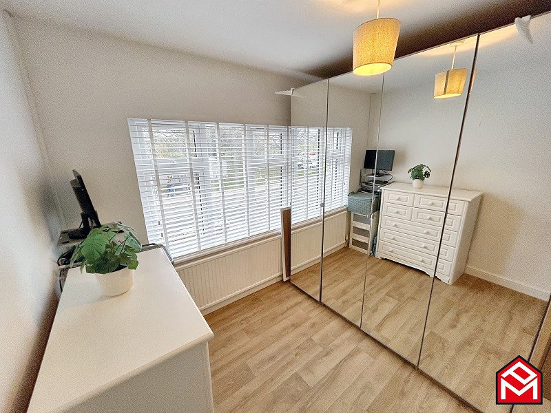 UPVC double-glazed window to the front with newly fitted slat blinds, newly fitted LVT wood-effect flooring, freestanding mirror-fronted wardrobes, radiator, plastered walls and ceiling.