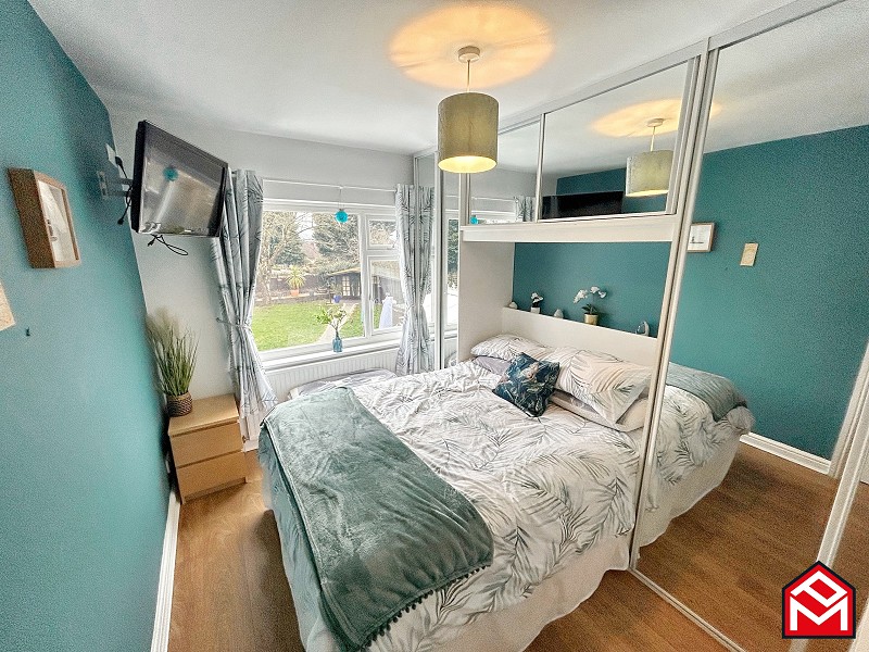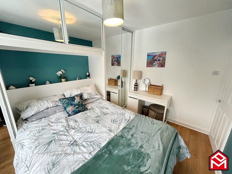 UPVC double-glazed window to the rear, fitted mirror-fronted wardrobes, wood-effect flooring, radiator, plastered walls and ceiling.