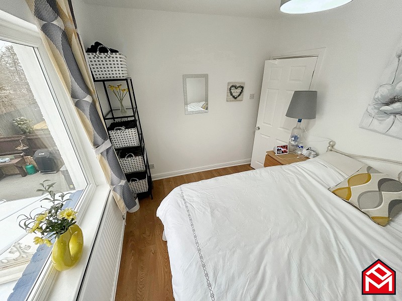UPVC double-glazed window to the rear, freestanding wardrobes with one mirror-fronted door, wood-effect flooring, radiator, plastered walls and ceiling.