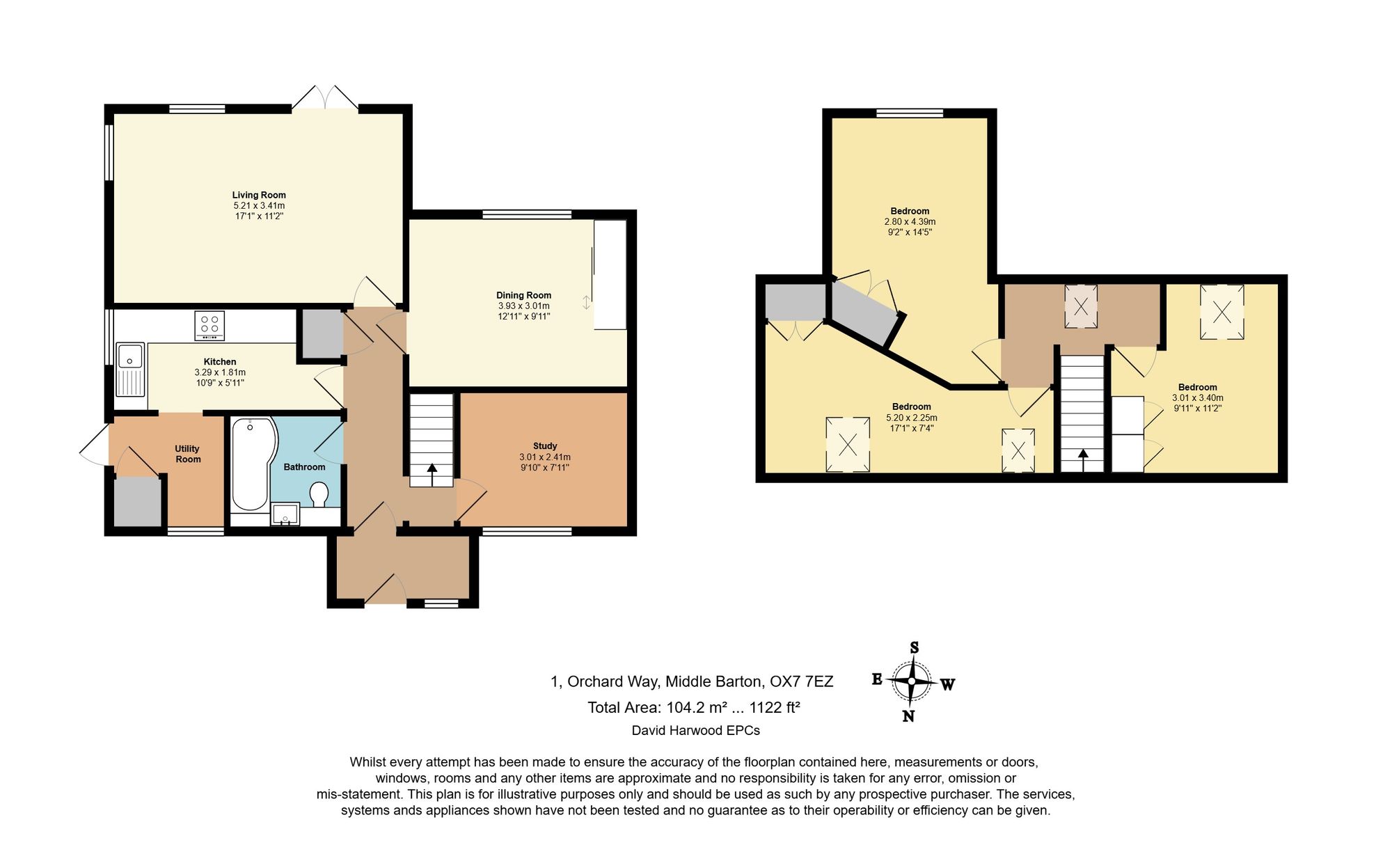 On the ground floor, there’s a bright living room, separate dining room, and a handy study. The kitchen leads through to a useful utility room, and there’s also a family bathroom on this level.