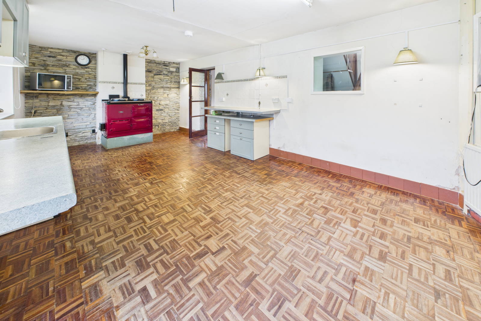 Conservatory 15'11'' x 10'7''A bright and spacious conservatory enjoying panoramic views across the garden. UPVC double-glazed windows and doors open directly onto the outdoor space, creating a seamless connection between house and garden. Finished with vinyl flooring, wall lighting and power points. Hallway 5'0'' x 19'0''The welcoming entrance hallway features vinyl flooring to the entrance area with built-in shelving and storage. Moving through the property, the hallway offers carpeted flooring, internal windows, ceiling lighting, radiators, power points and an open staircase rising to the first floor. A door provides access to the rear of the property. Utility Room 8'6'' x 3'5''Practical and well-equipped, with two internal windows, a large stainless-steel sink and drainer with mixer tap, wall-mounted storage cupboard, WC, radiator and vinyl flooring. Kitchen / Diner 12'1'' x 21'6''A true heart-of-the-home space with two UPVC double-glazed windows to the front aspect overlooking the gardens. The kitchen offers a range of fitted base and eye-level units with rolled-edge work surfaces and tiled splashbacks. A stunning oil-fired Aga takes centre stage, complemented by delightful parquet flooring and exposed stone walling. Additional features include a stainless-steel sink, radiator, internal windows, wall and central lighting, and a generous pantry with shelving. There is ample space for a dining table, making this an ideal room for family gatherings. Lounge 16'6'' x 14'11''A cosy yet spacious reception room enjoying dual-aspect UPVC double-glazed windows. A feature exposed stone wall with charming wood-burning stove creates a warm and inviting atmosphere. Carpeted flooring, wall lighting, radiators and power points complete the room. Dining Room 9'8'' x 11'9''UPVC double-glazed window to the rear aspect with radiator beneath. Featuring carpeted flooring, pendant lighting, exposed feature wall and pow