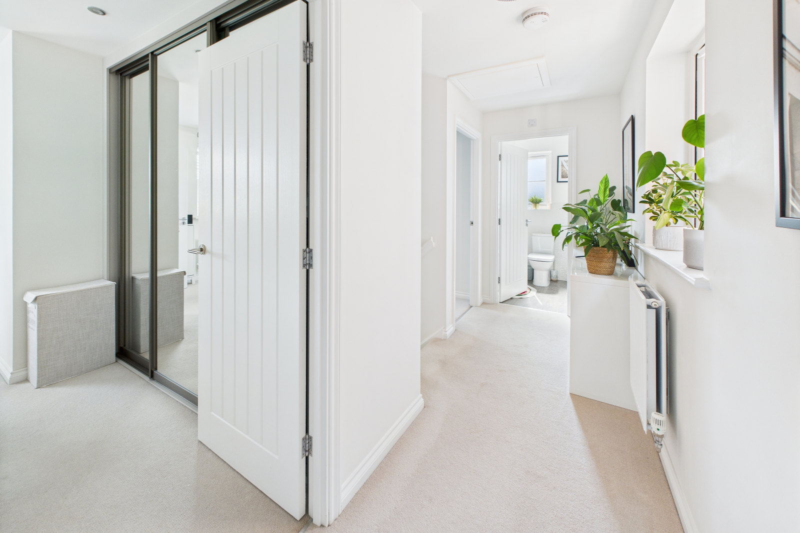First Floor LandingThe spacious landing is naturally lit by a UPVC double-glazed window to the rear and provides access to the loft. Finished with plush carpet, central ceiling lighting, radiator, and power points, with doors leading off to all bedrooms and the family bathroom.