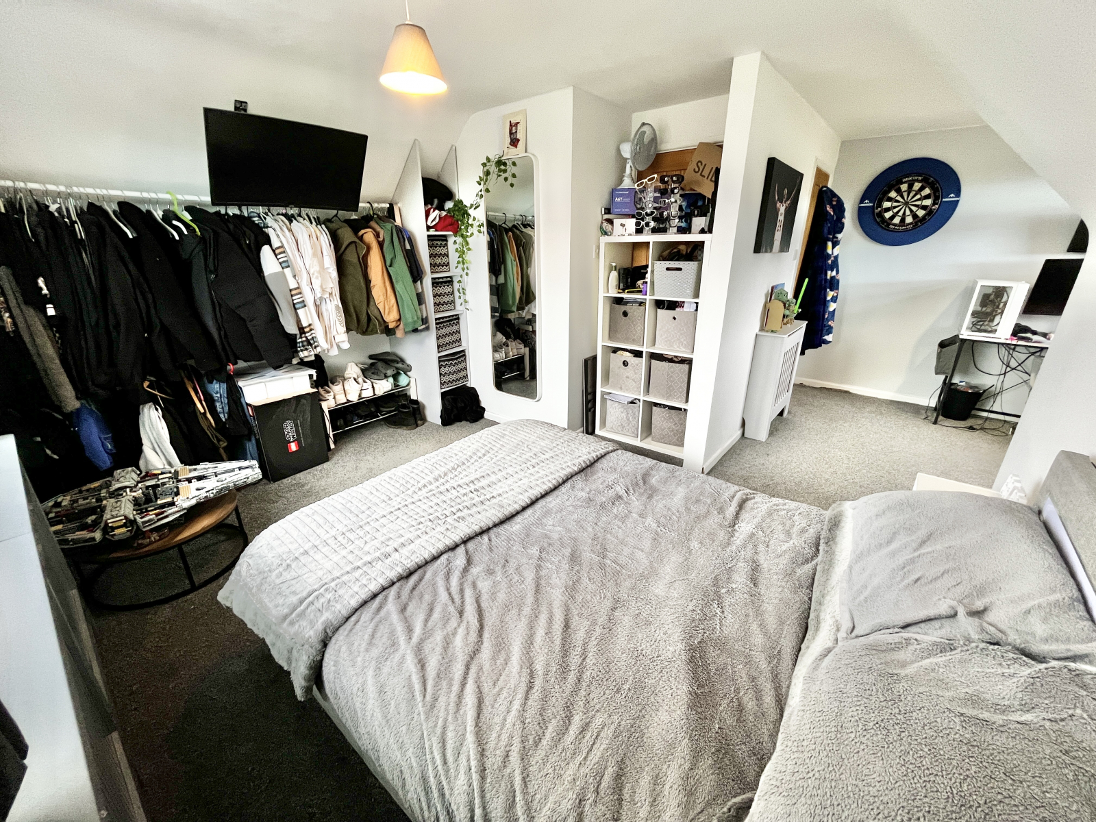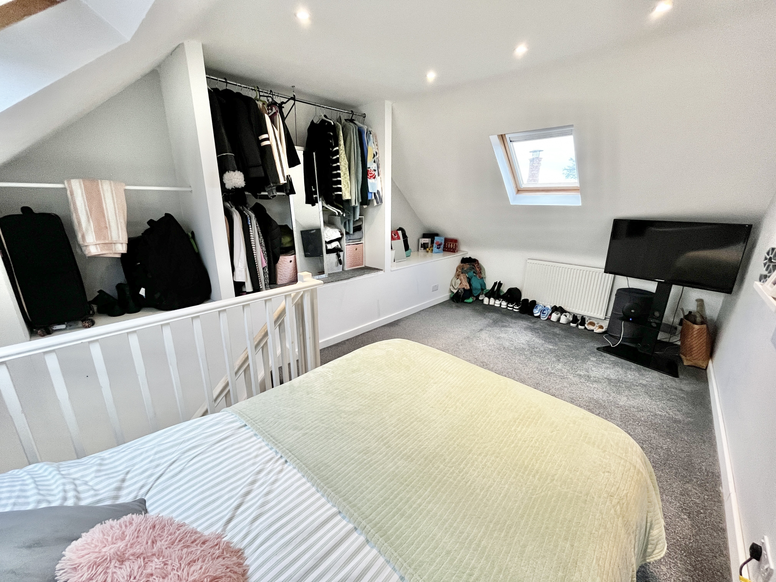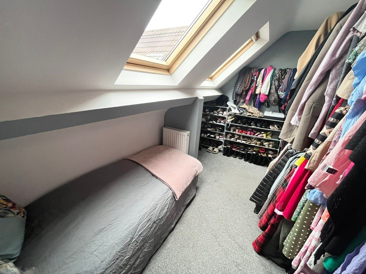 Two Velux windows. Currently used as a dressing room. Carpeted with a radiator and power points.