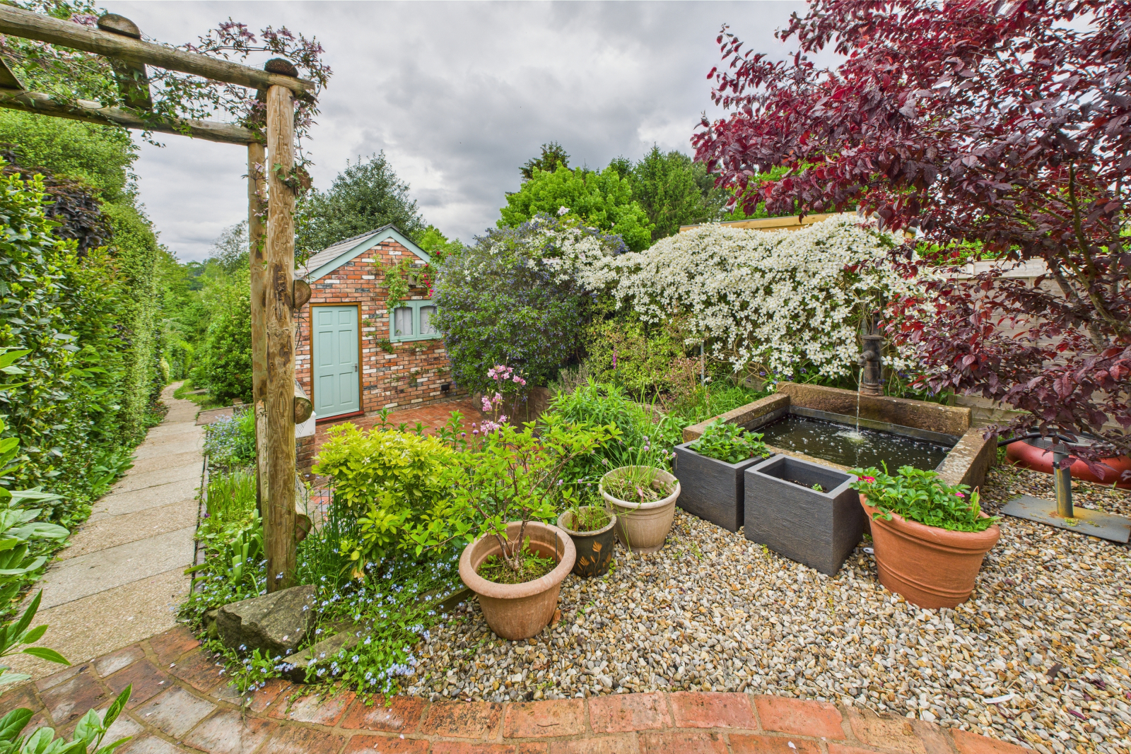 • Landscaped cottage-style garden with ponds and water features