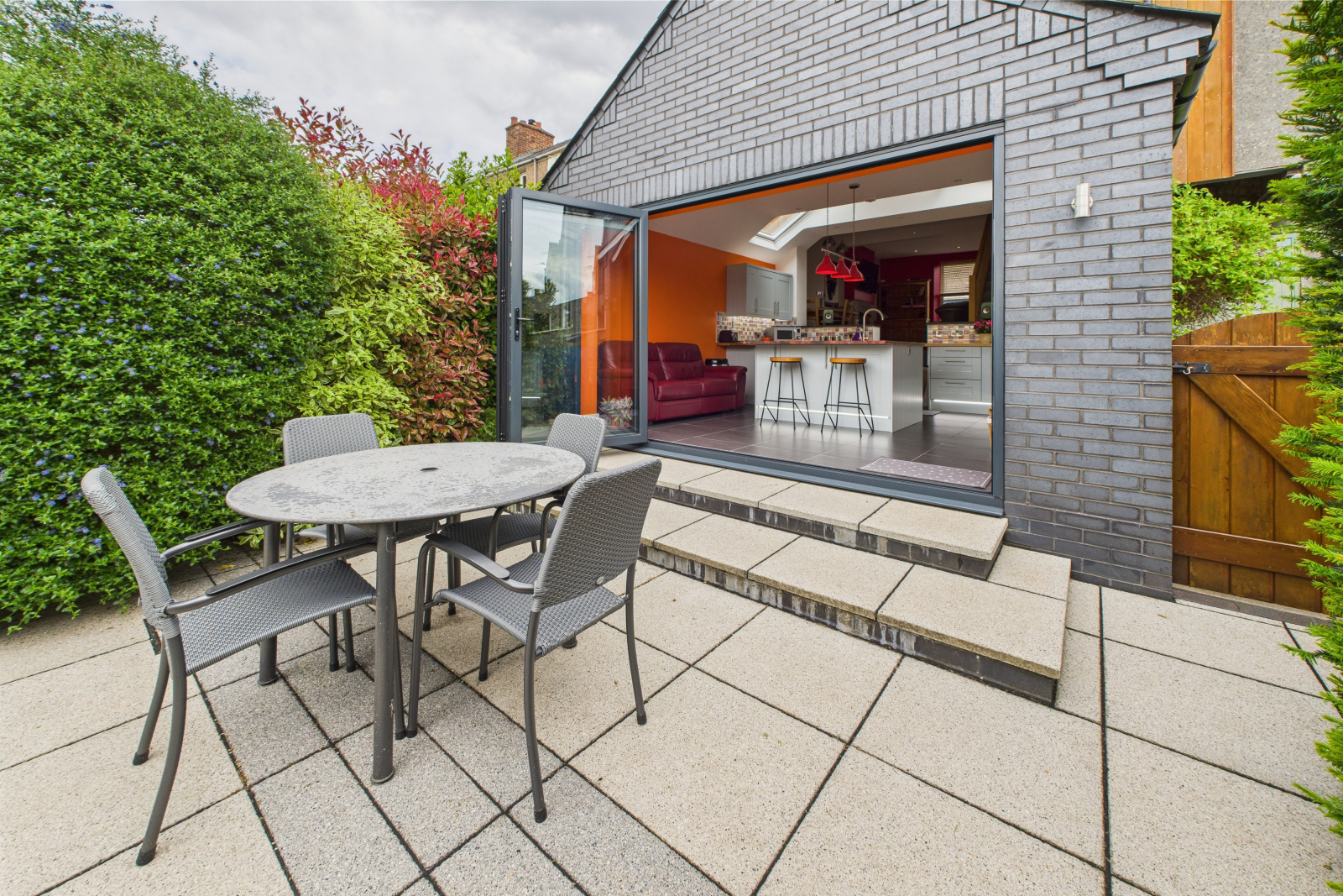 • Stunning open-plan kitchen with vaulted ceiling and bi-fold doors
