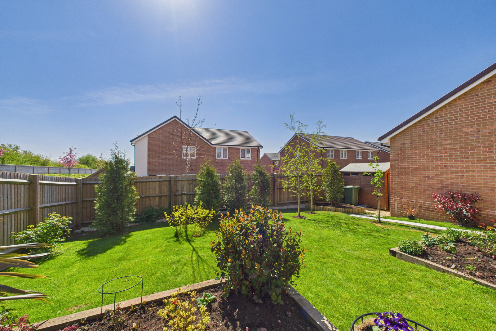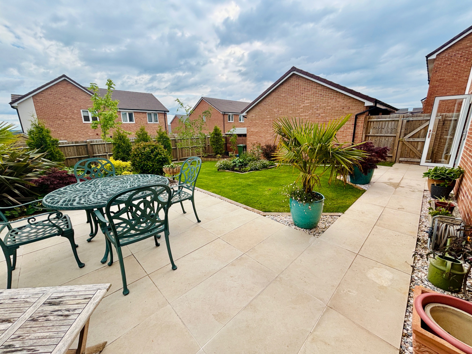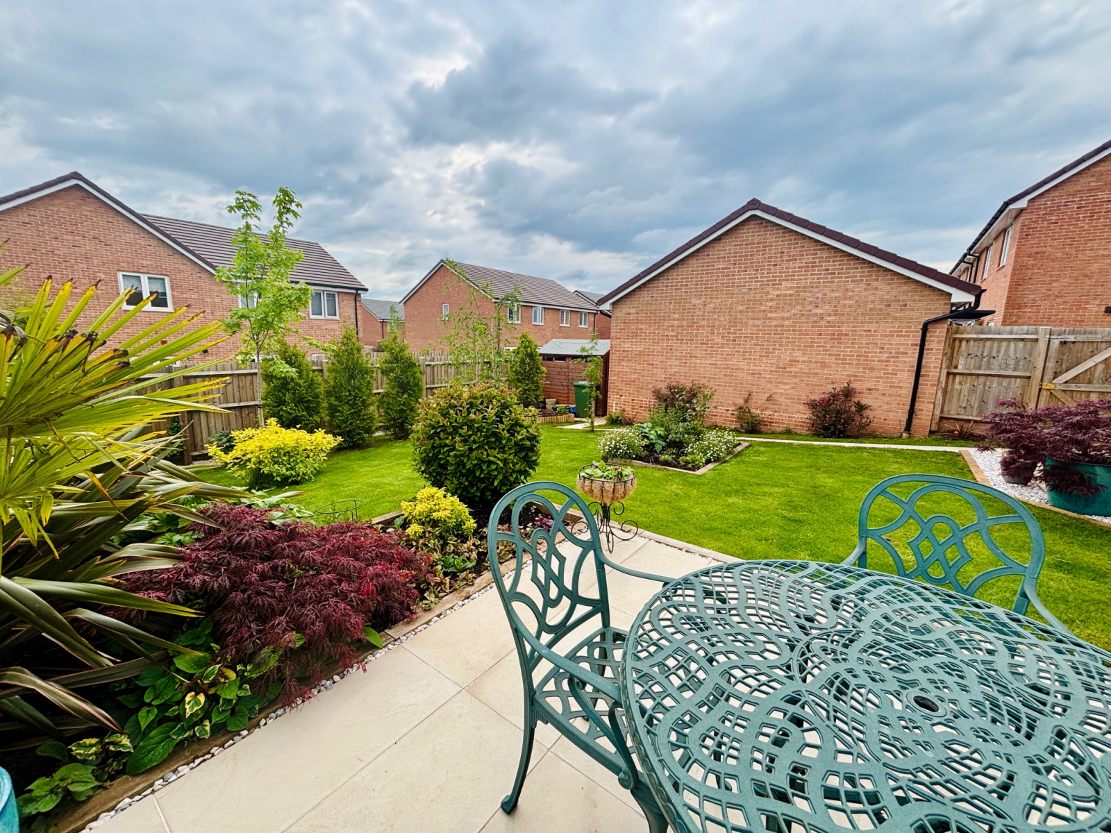 The rear garden is truly breathtaking—expertly landscaped and set on a generous corner plot, it’s an outdoor sanctuary for play, relaxation, and entertaining. A raised patio offers the perfect spot for summer barbecues, while vibrant borders and lush lawn invite children to explore. A paved path leads to a large timber shed and additional seating area. Fully enclosed for peace of mind and privacy.