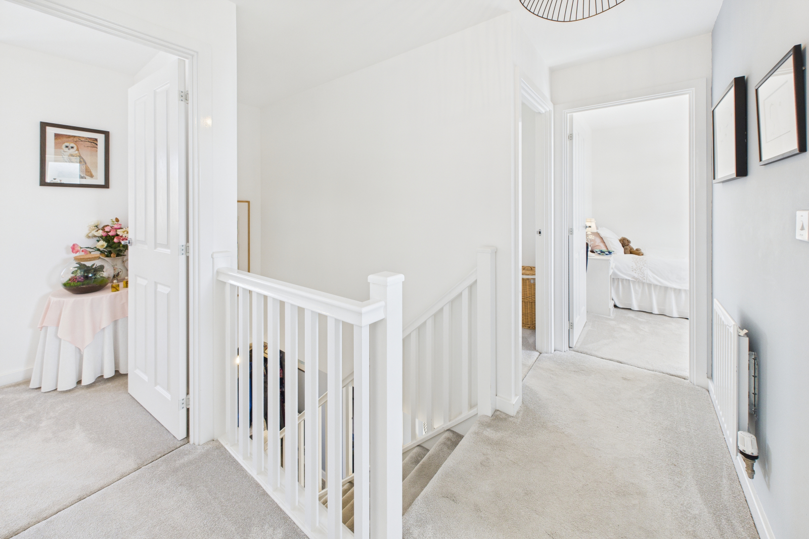 First Floor Landing A spacious, light-filled landing that offers access to all bedrooms and the loft. Carpeted for comfort with power points and a radiator. Airing cupboard for added storage.