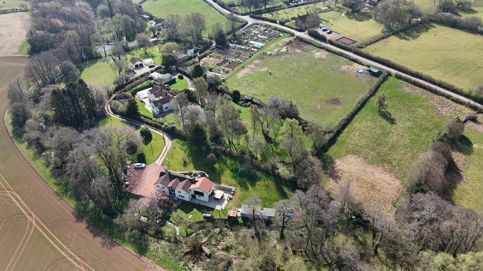Beyond the formal gardens lies an adjoining one-acre paddock, on a separate title with its own vehicular access. This versatile space is ideal for equestrian use, a smallholding, or simply additional land to enjoy the rural setting.