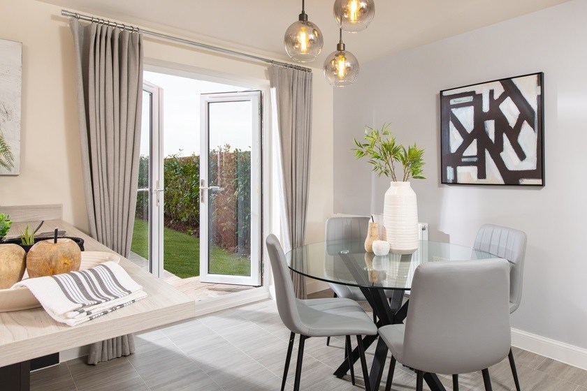This four-bedroom detached home offers a generous open plan and upgraded kitchen with French doors opening onto the rear garden. Followed by a bright and light lounge, cloakroom, and extra storage space.