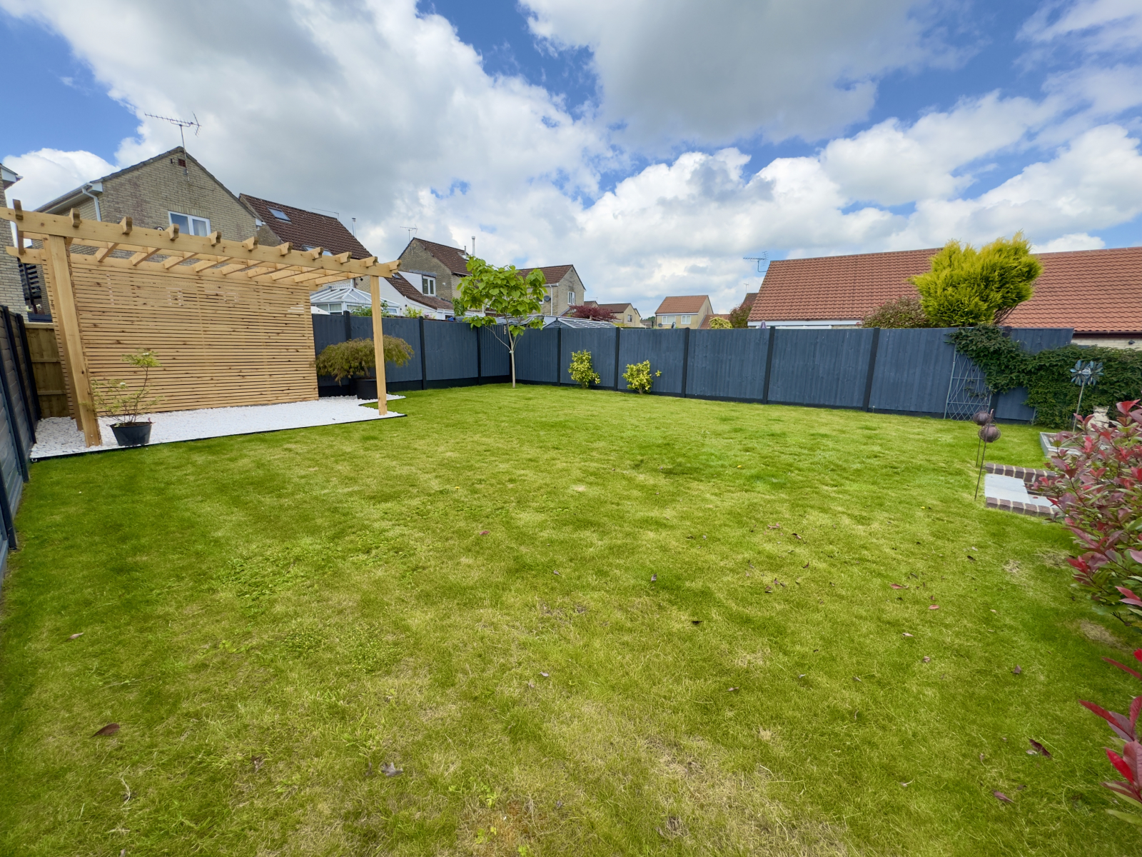 To the rear, the beautifully presented garden has a very spacious paved patio area which is ideal for enjoying outdoor living. Secured with fenced boundaries and gated side access. steps lead to a large raised lawned area with an abundance of flowering borders. Recently installed bespoke wooden pergola with contrasting pebbled seating area. Outside power and lighting. Paved area to side giving access to the garden shed.