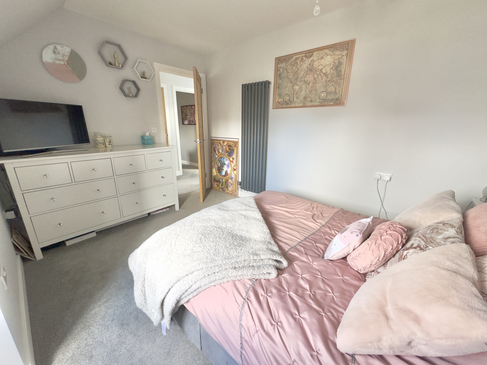 UPVC double-glazed window to rear elevation. Central lighting and vertical modern radiator. Carpeted flooring and power points.