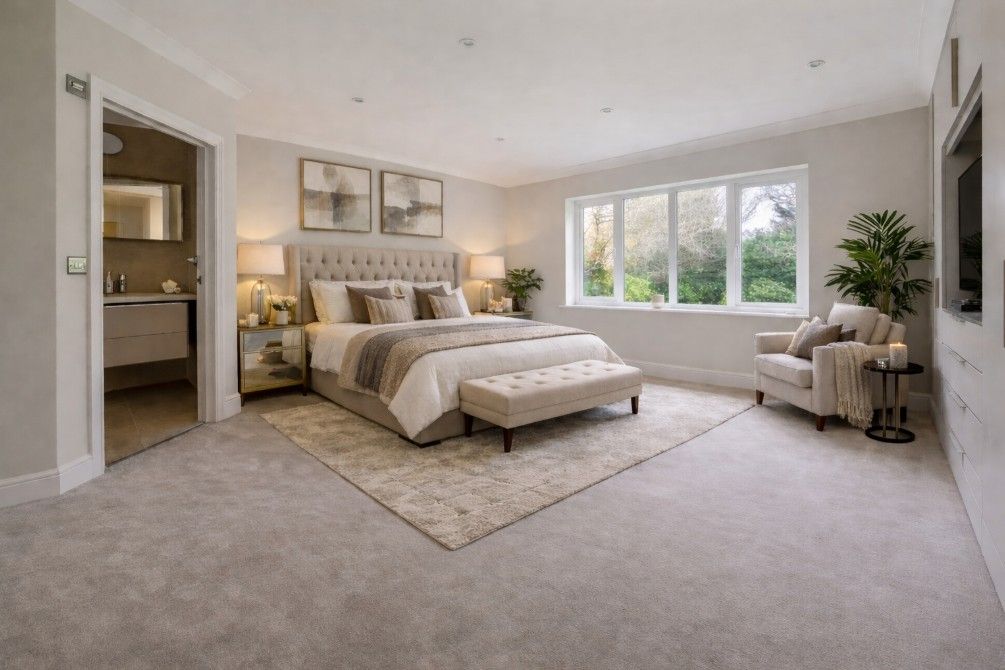 There are four well-proportioned bedrooms, each finished with plush carpeting and offering versatility for guest accommodation, home offices or hobbies. The bathrooms are a particular highlight, fitted with elegant Villeroy & Boch sanitary ware, contemporary vanities and Porcelanosa tiles, creating a refined, hotel-style feel. Practical touches such as wet underfloor heating through the whole home, a new boiler, wood-effect Amtico flooring to the living spaces and bathrooms, and high quality double-glazed windows and external doors ensure the property is both comfortable and energy efficient. The extra attention to detail continues with Cat 6 cabling throughout and TV points in every room.