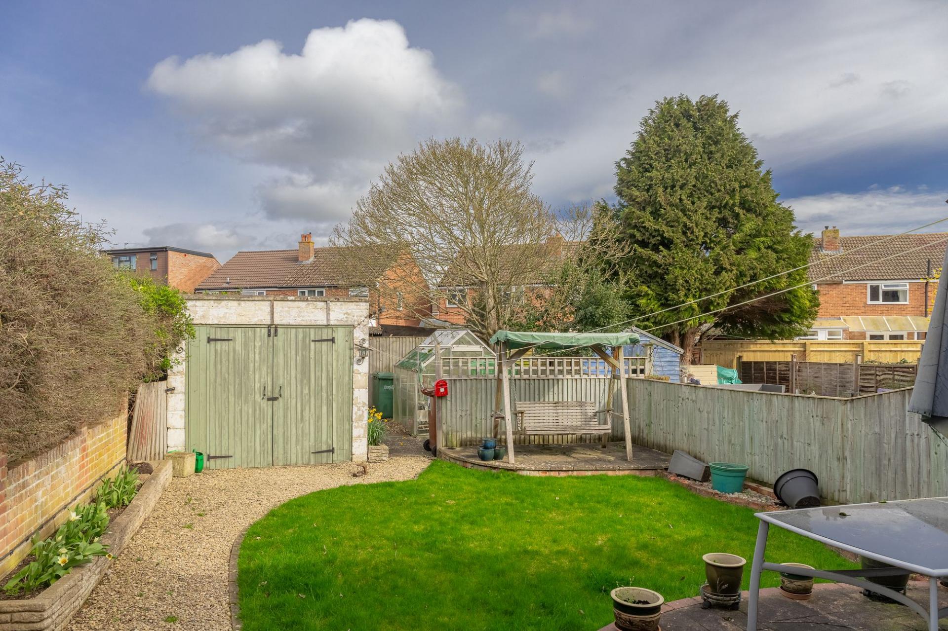 Outside, the home benefits from fantastic off-street parking with convenient side access. The rear garden is of an excellent size and includes a separate garage, as well as a dedicated greenhouse area perfect for gardening enthusiasts.