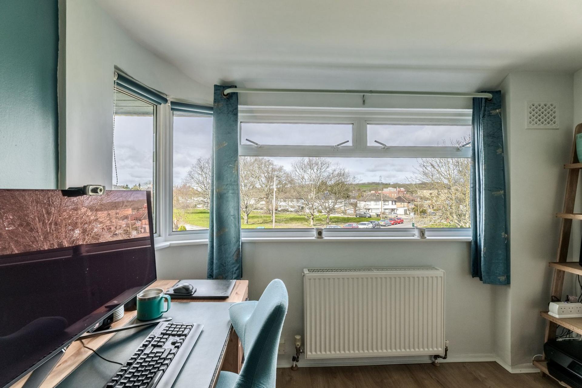 - Bright living room with bay window