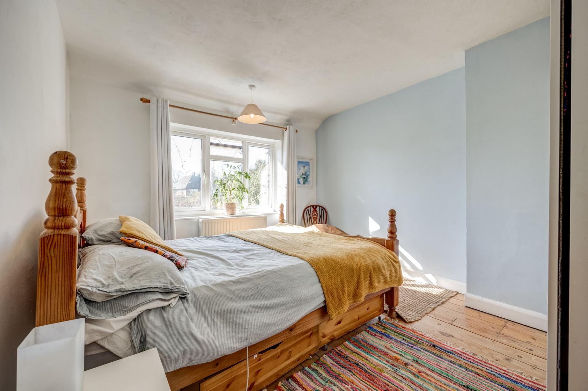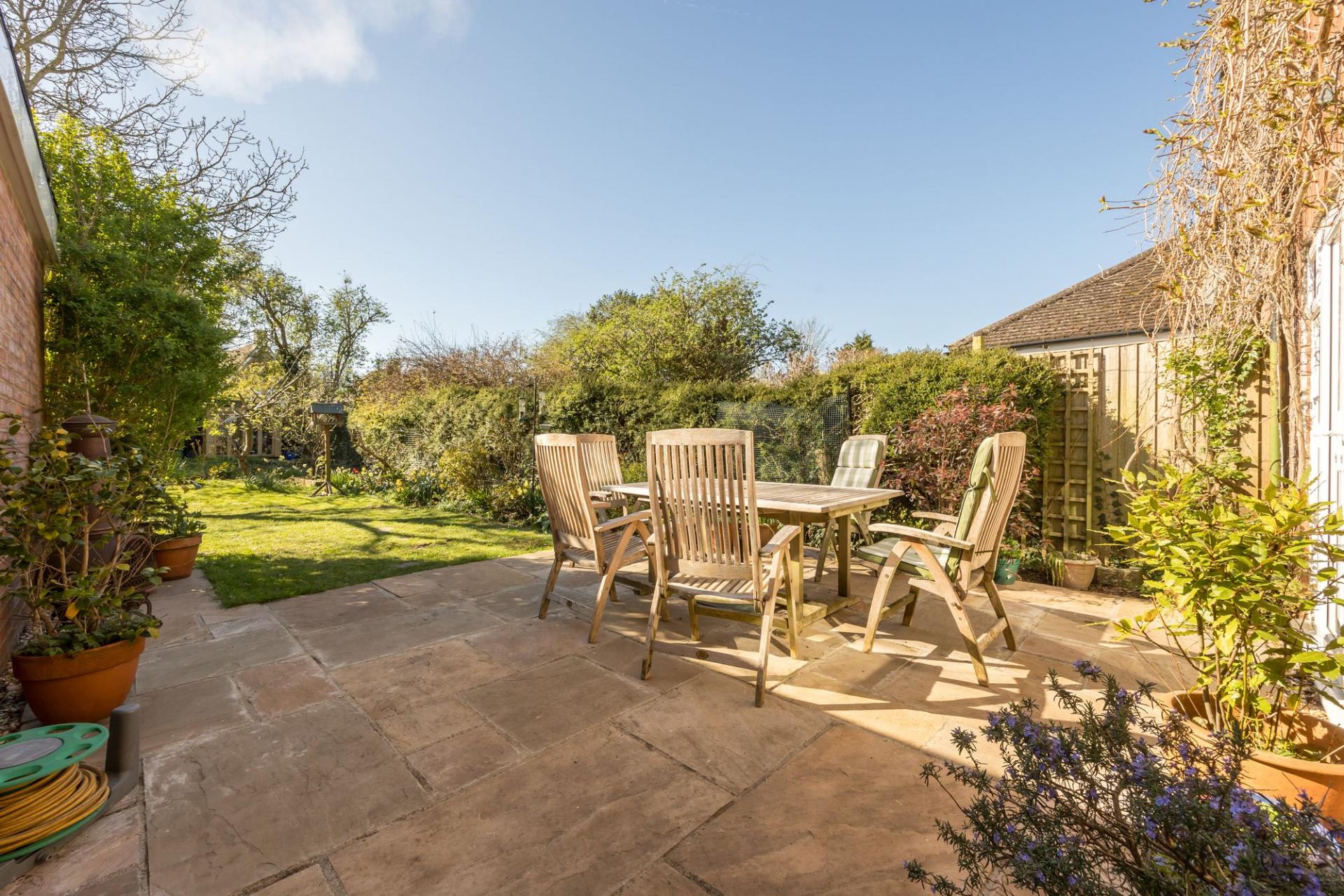 The plot is a particular highlight. The rear garden extends beyond 100ft and enjoys a sunny southerly aspect. It features a broad expanse of lawn, mature trees and planting, and a substantial patio area that’s perfect for outdoor entertaining. To the front, the property provides ample driveway parking and space for bike storage.