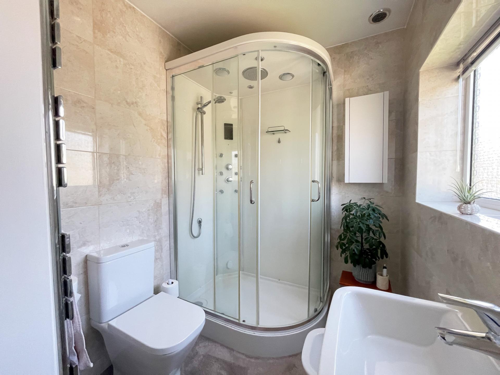 On the first floor are four double bedrooms and the family bathroom. The master bedroom benefits from an en suite, with shower cubicle that features steam shower and massage capability. The ample loft space is boarded and lit and has the potential for conversion to additional accommodation.