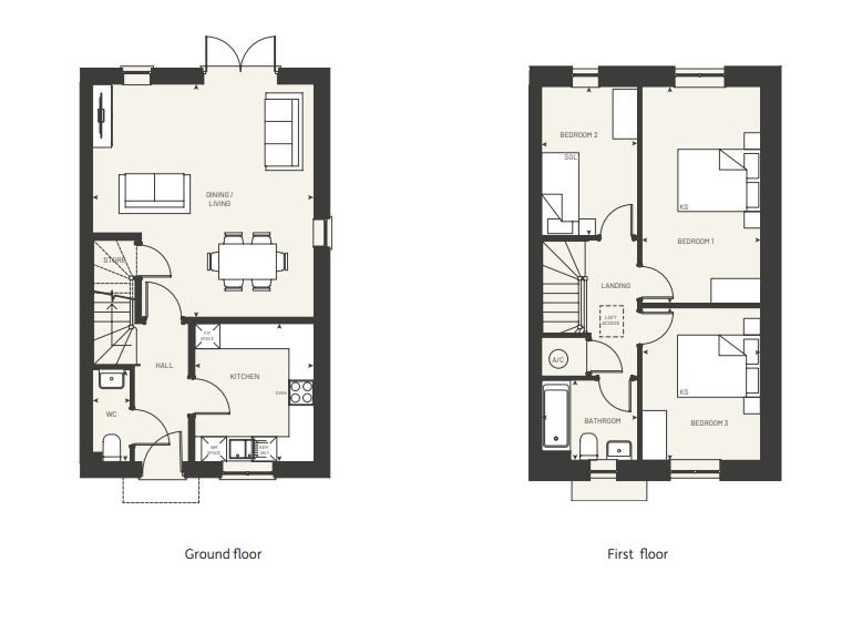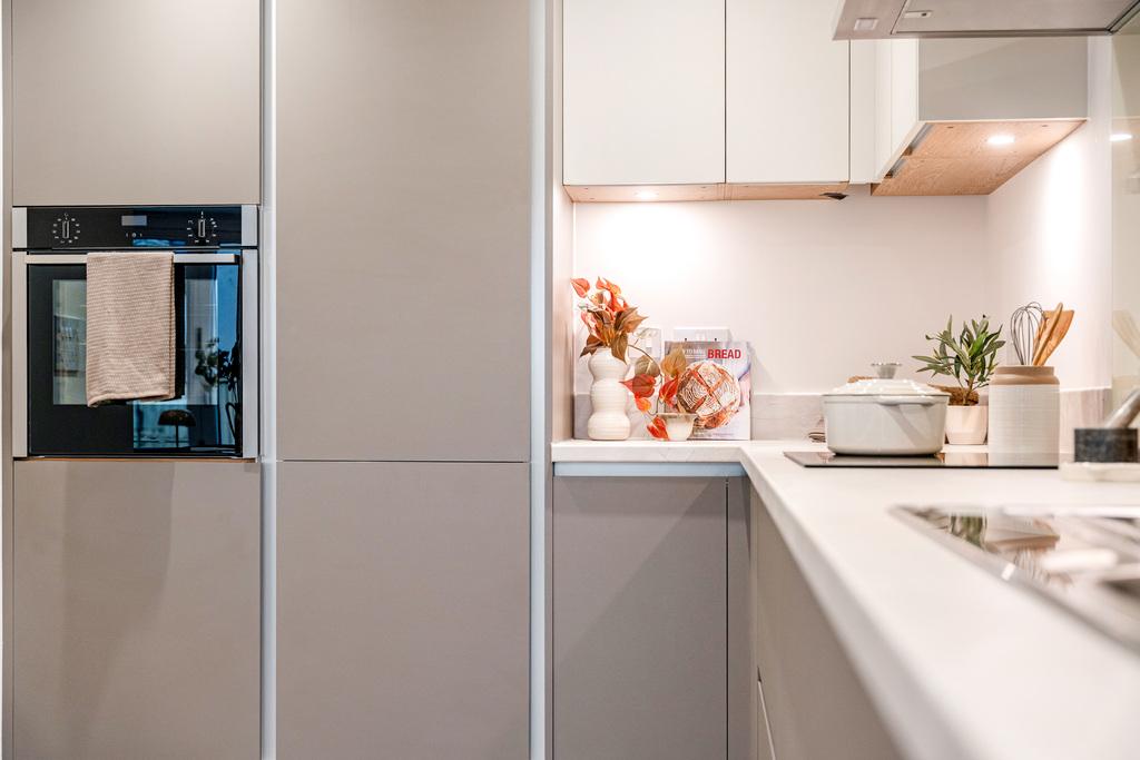 To the front of the property, you’ll find private parking and an attractive entrance leading into a welcoming hallway. Off the hallway is a convenient ground floor WC and staircase rising to the first floor. Positioned at the front of the home, the contemporary kitchen features a generous U-shaped layout, providing excellent worktop and storage space. A full suite of integrated appliances is included, comprising a single oven, induction hob, dishwasher, and fridge freezer — creating a sleek and highly functional space ideal for both everyday living and entertaining.