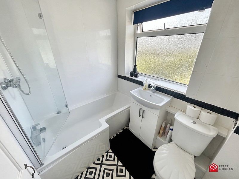 UPVC double glazed window. Fitted bathroom suite with mains shower over bath, W.C and wash hand basin with vanity base unit. Tile effect flooring.
