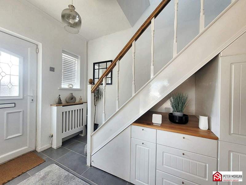 Entrance via uPVC double glazed front door with side window. Tiled flooring. Built in under stairs storage. Stairs leading to first floor. Access to kitchen and lounge/dining room.