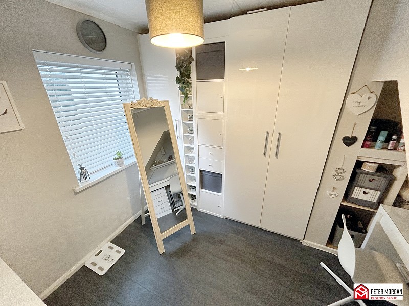 uPVC double glazed windows to front and side. Wood effect flooring. Two radiators. Wall mounted electric fire. Dropped light fitting.