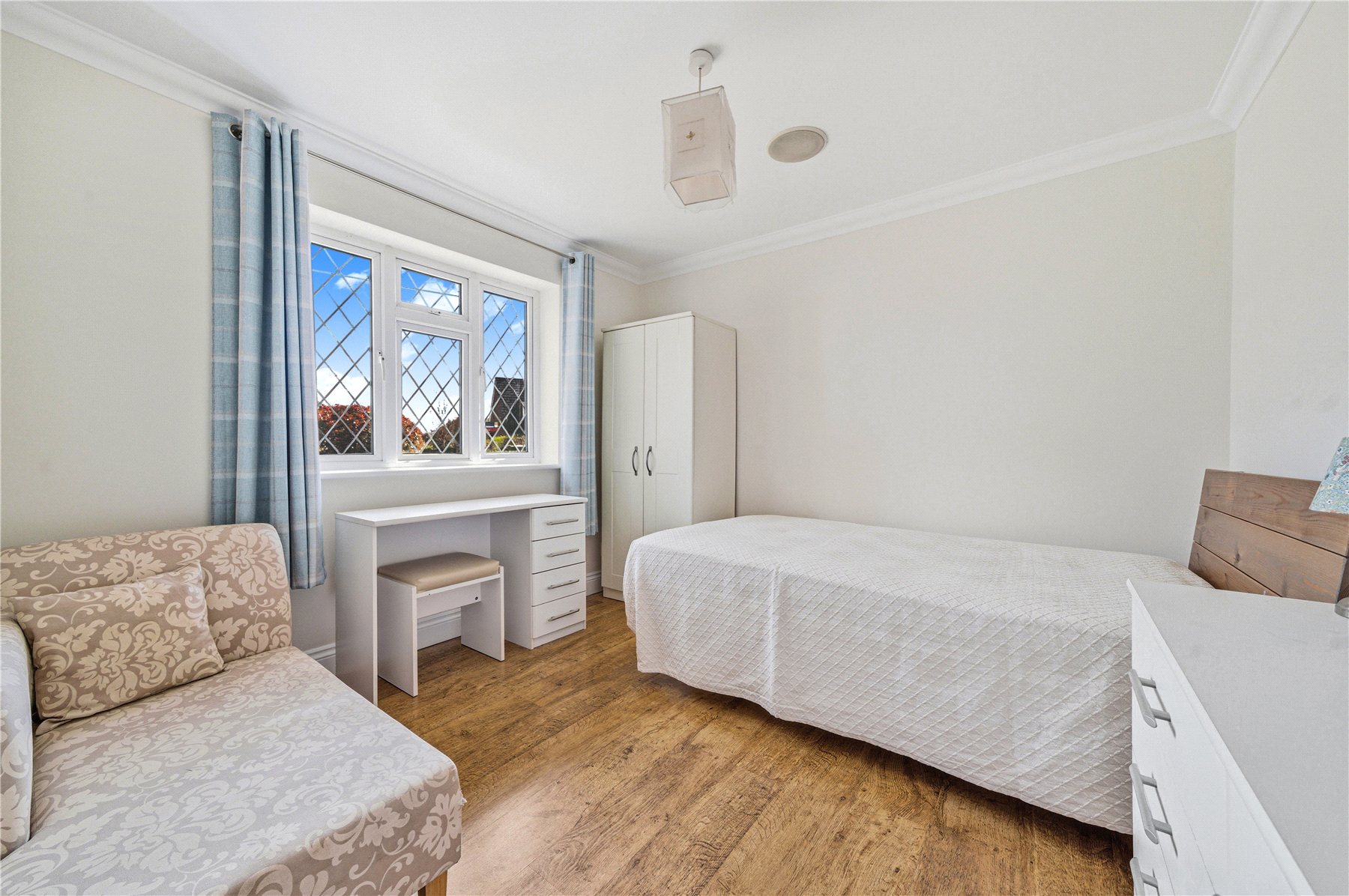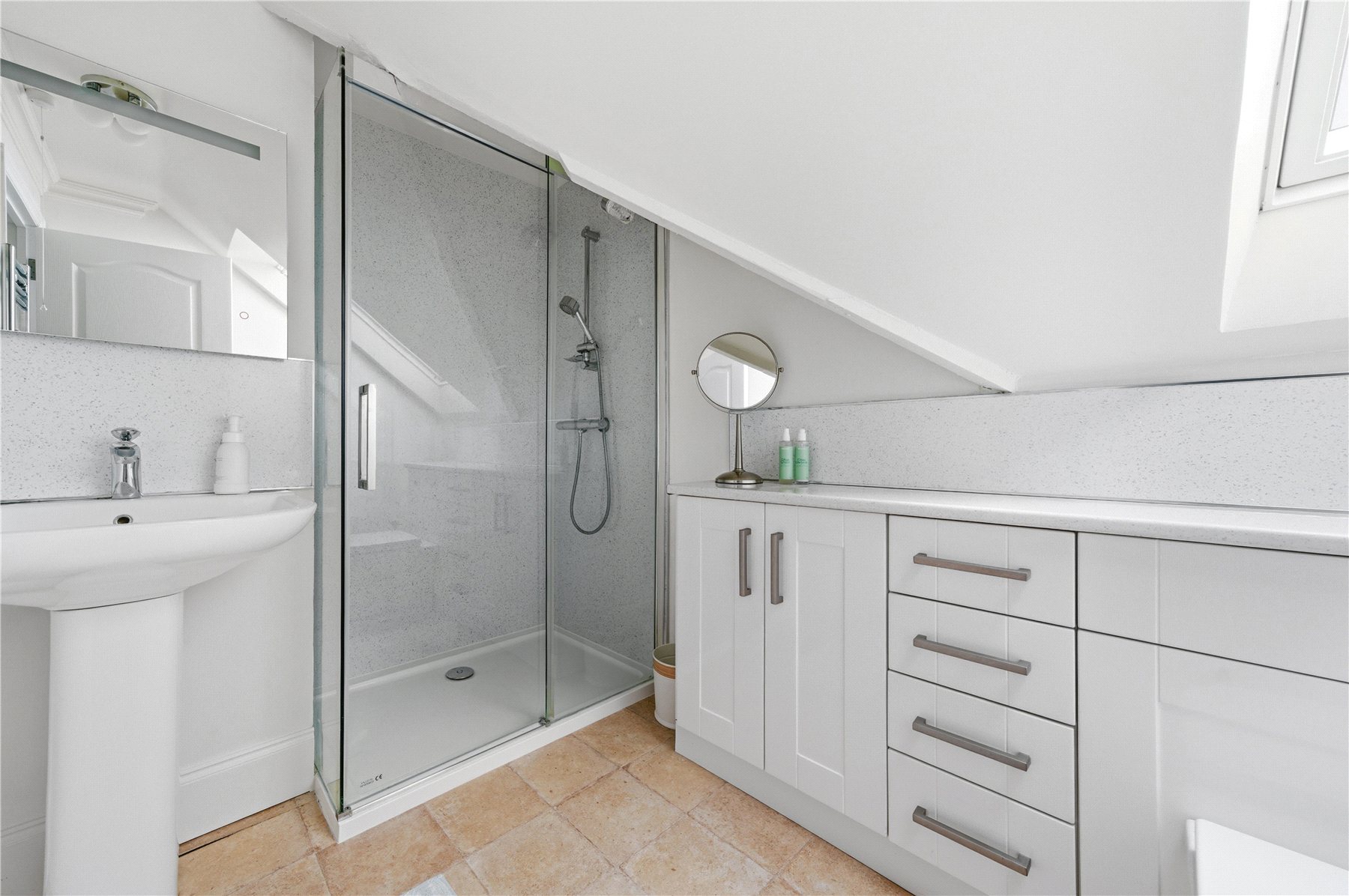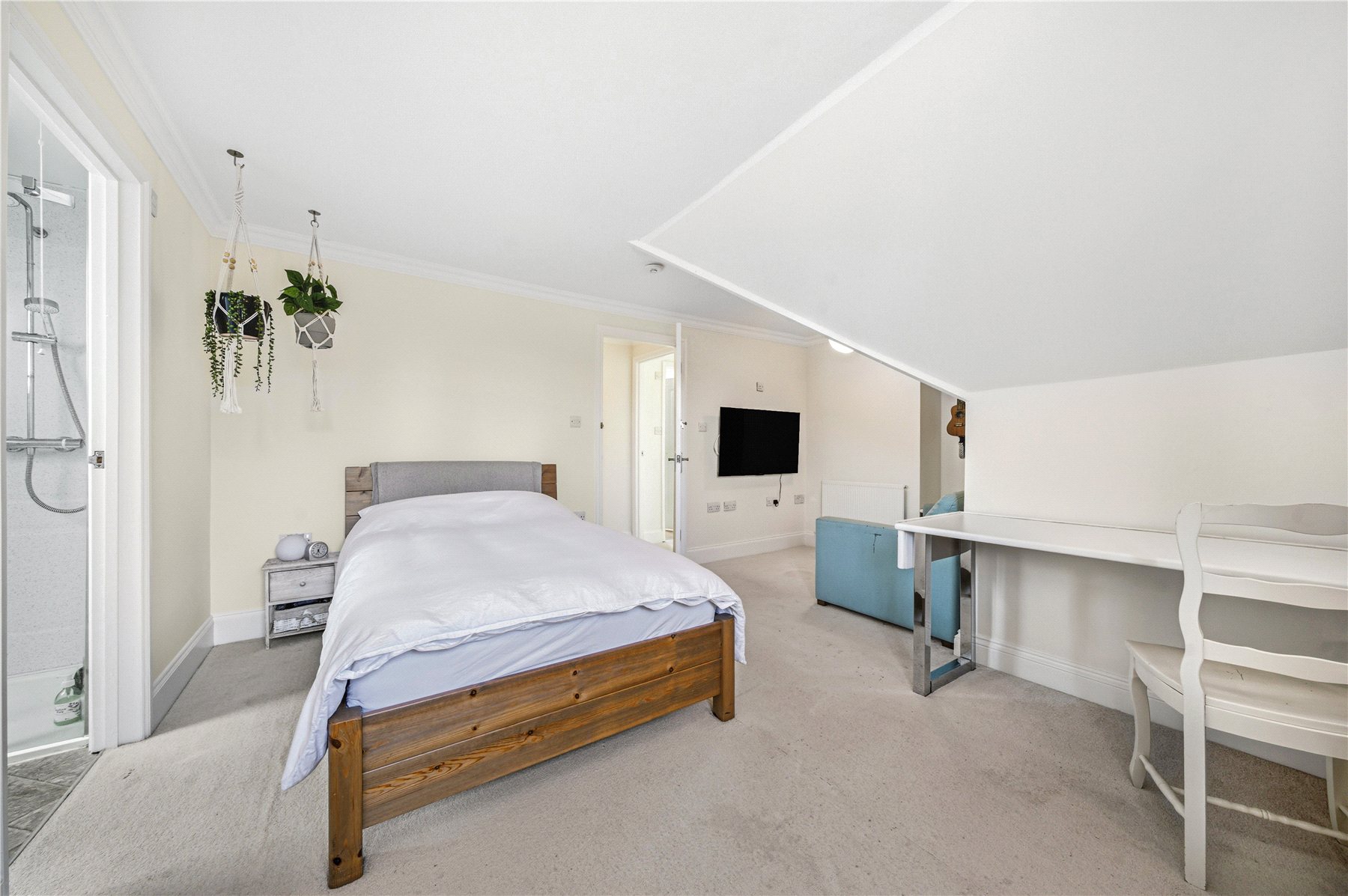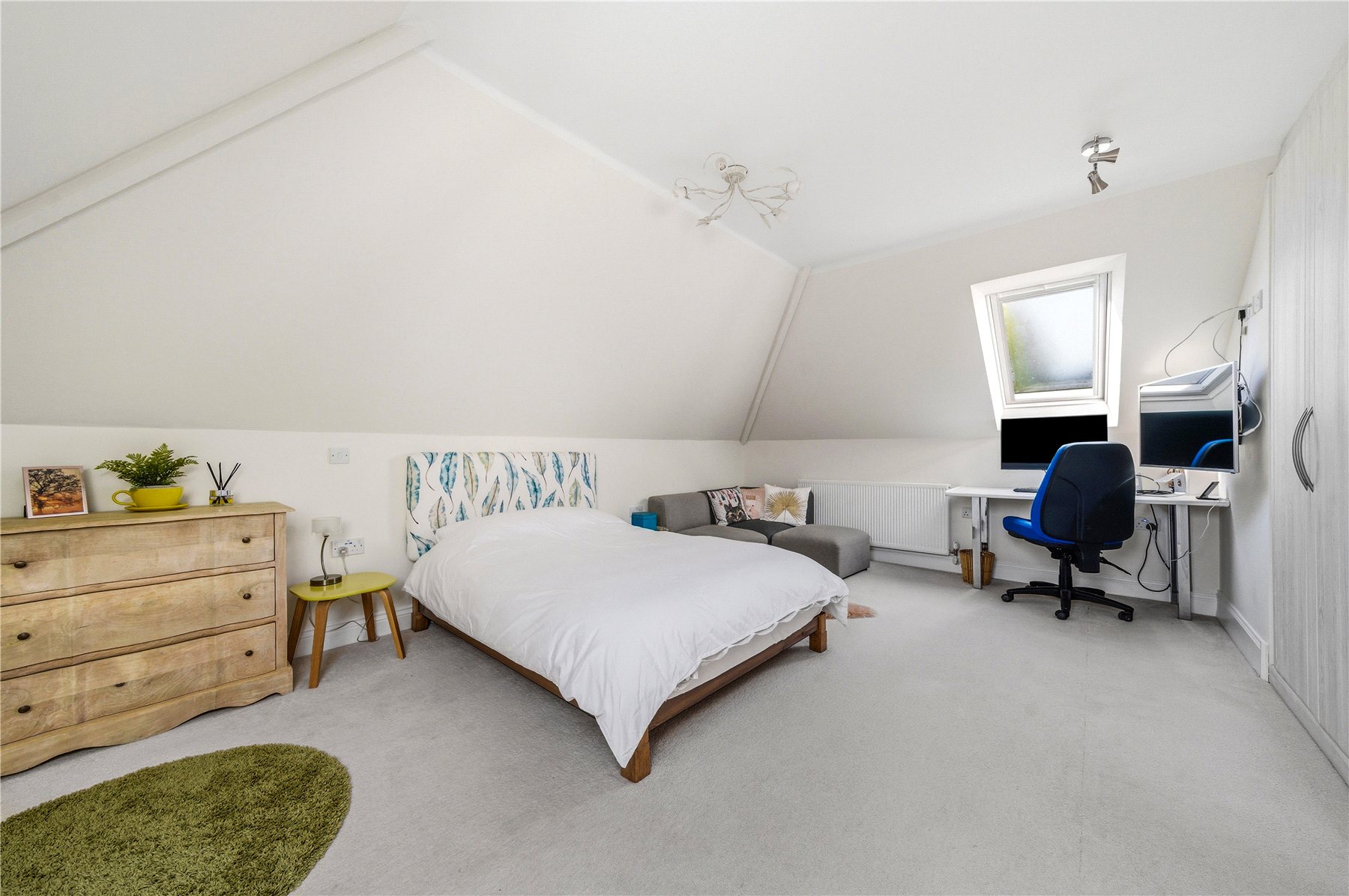 Thoughtfully designed to combine space, light and flexibility, the property provides up to five bedrooms across two floors. The first floor hosts two outstanding double bedrooms, including a truly impressive principal suite. Bathed in natural light from twin Velux windows, this elegant retreat features extensive built-in wardrobes and a luxurious ensuite shower room. The second bedroom on this level is equally well-proportioned and benefits from a stunning four-piece ensuite, complete with a freestanding double-ended bath and separate walk-in shower. A standout feature of the upper floor is the expansive landing area, currently utilised as a stylish home office and informal family space.