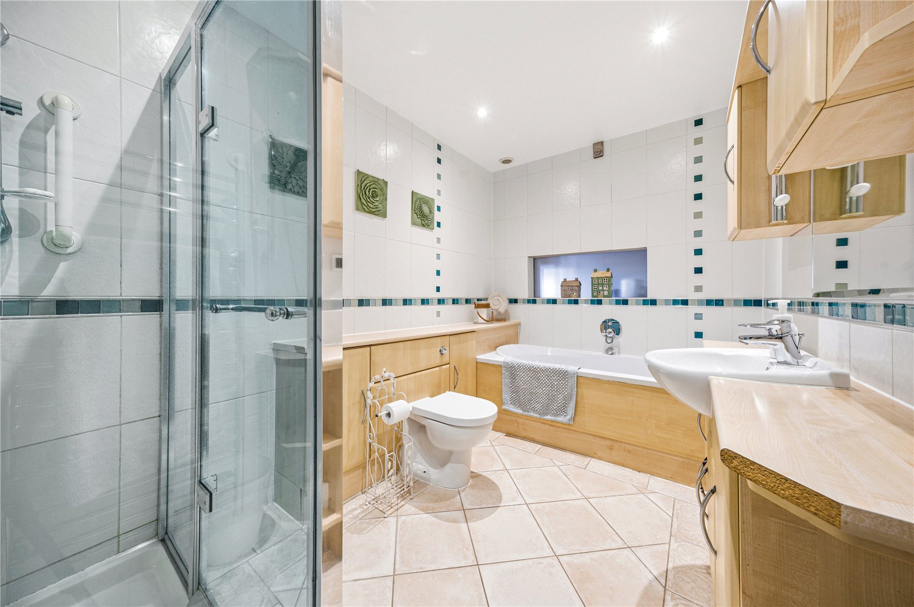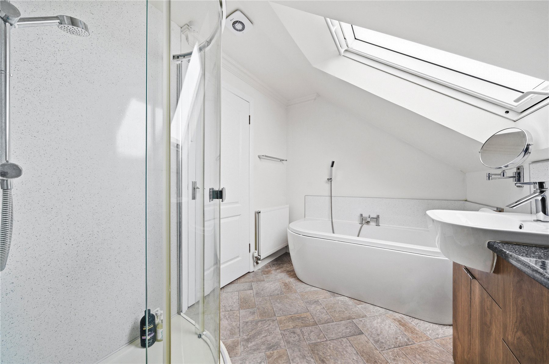 The ground floor continues to impress, offering three further generous double bedrooms, each adaptable to suit a variety of lifestyleswhether as additional reception rooms, guest accommodation or private workspaces. A spacious and beautifully finished family bathroom, with both bath and separate shower, serves this level.
