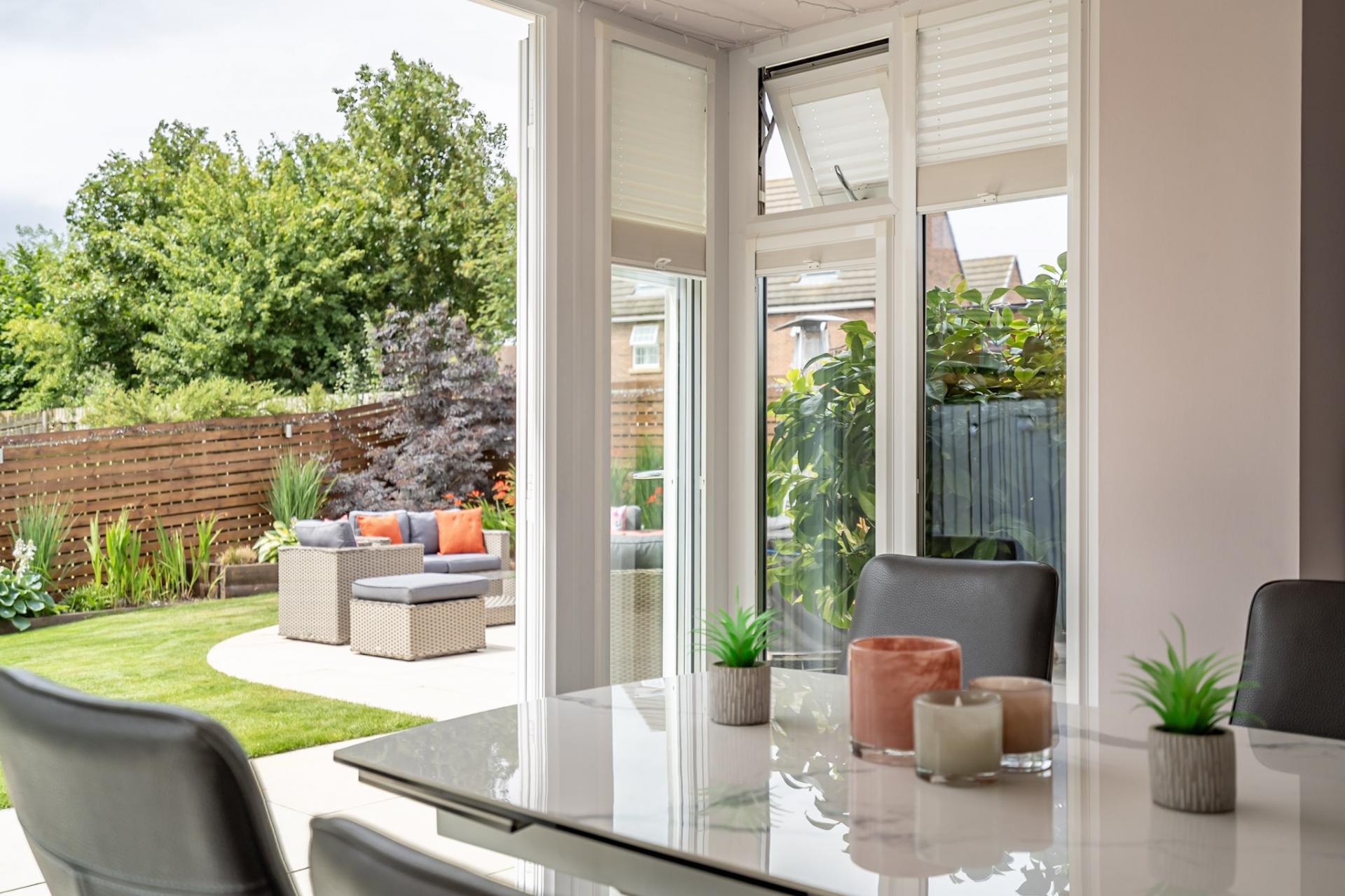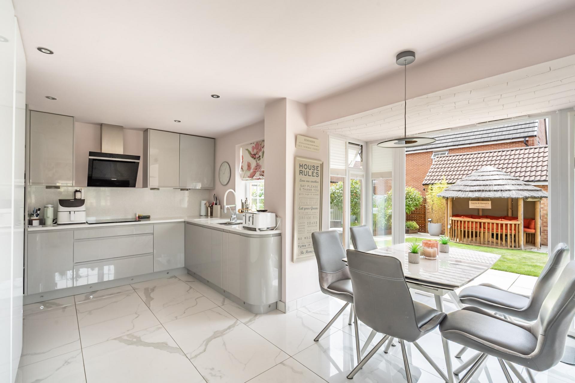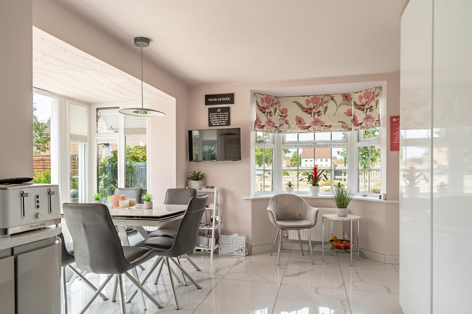 Built by David Wilson Homes, this detached family home is beautifully presented throughout and offers four bedrooms, including an ensuite to the master, spacious living room and kitchen/dining room having a walk-in bay with French doors opening onto the south-west facing garden. The property also benefits from off-street parking and a detached garage.