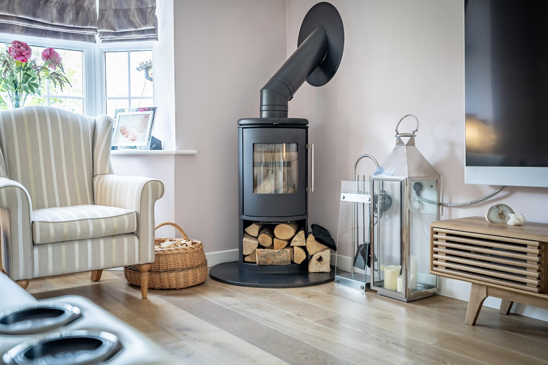 SITTING ROOM 17' 10" x 10' 8" (5.44m x 3.25m) Dual aspect room with bay window to front and window to side. Morso log burning stove, engineered oak flooring, two radiators.