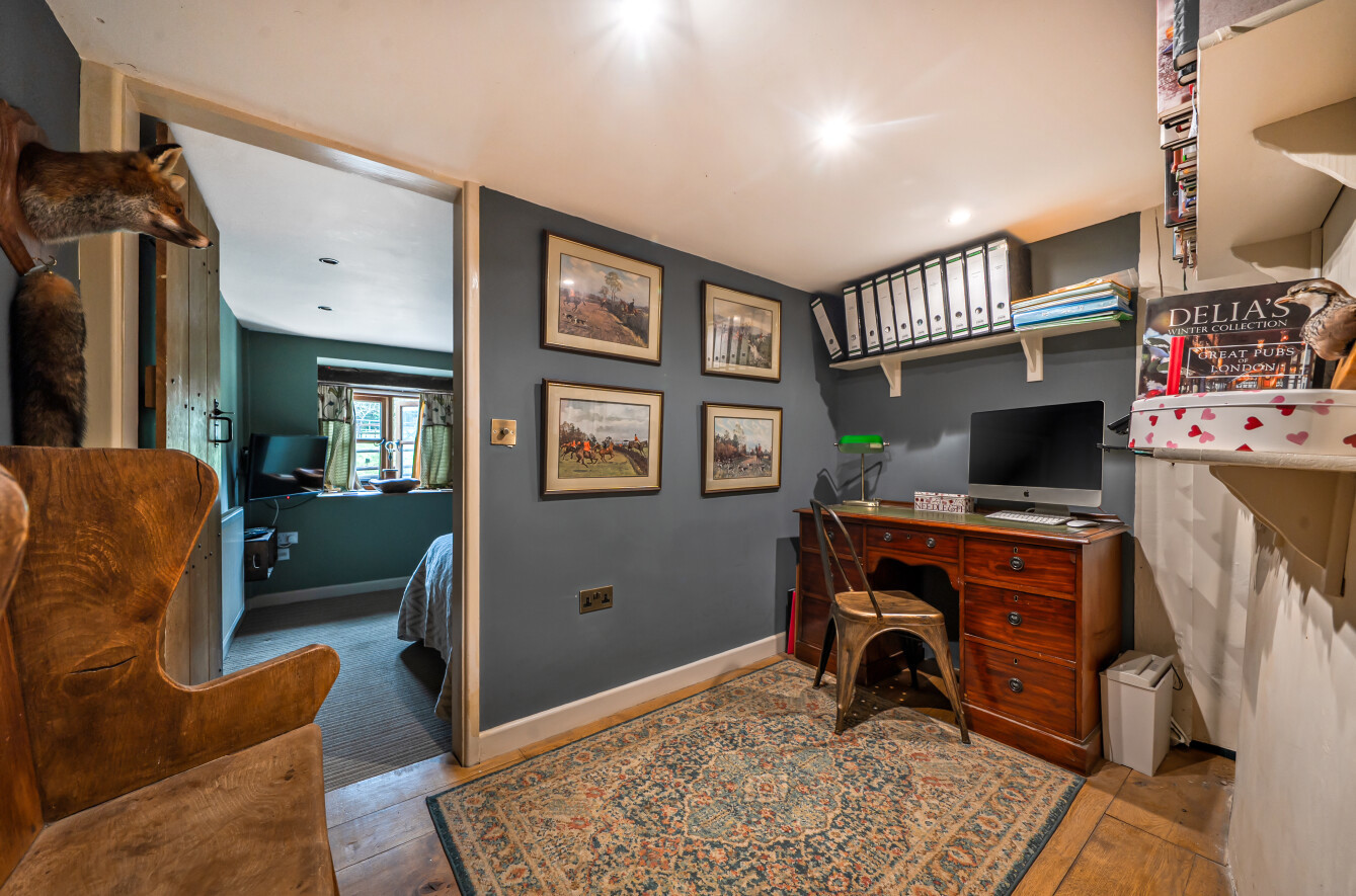The ground floor also includes a cloakroom, a utility room, and a further bathroom, providing well planned and highly functional spaces throughout. An inner office has been thoughtfully created at the heart of the home, with a door leading into a ground floor bedroom.