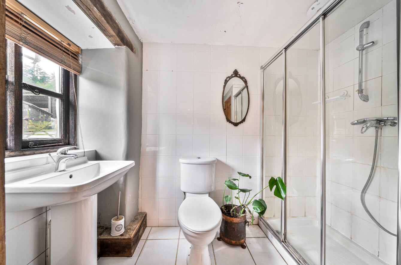 An inner corridor continues through to the sitting room, a cosy yet generously sized space featuring an inglenook fireplace with inset wood burning stove, creating a wonderful focal point. Stairs rise from the ground floor to a landing area, from which the two first floor bedrooms and family bathroom can be accessed.