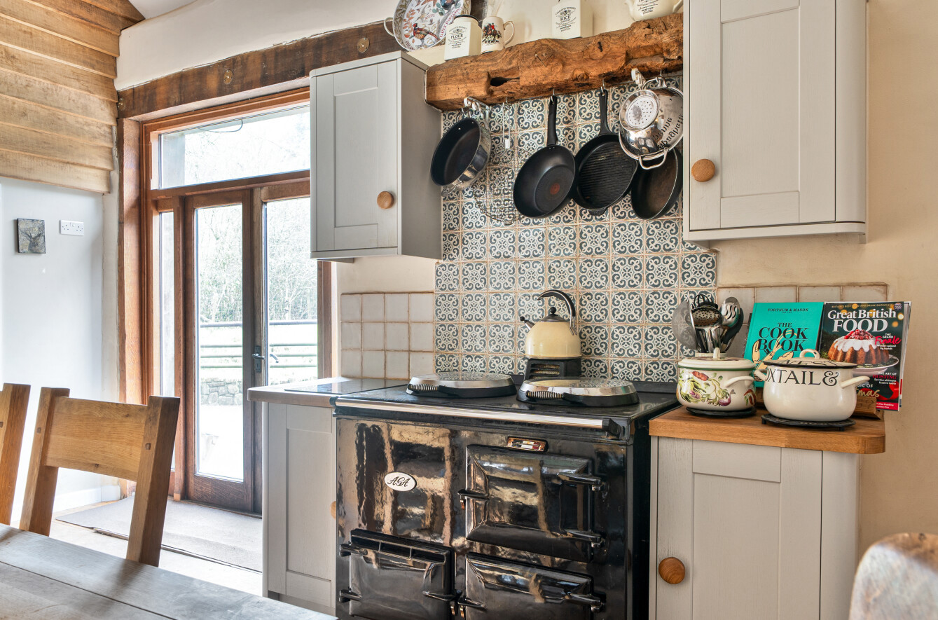 This generous space offers extensive worksurface areas, a Belfast sink, an electric Aga, and a range of integrated appliances. A step from the kitchen leads through to a versatile area that could be adapted to create the potential for an annexe, complete with its own shower room, built in wardrobes, an open plan bedroom with stairs rising to a mezzanine/store, and a ground floor external door providing independent access.