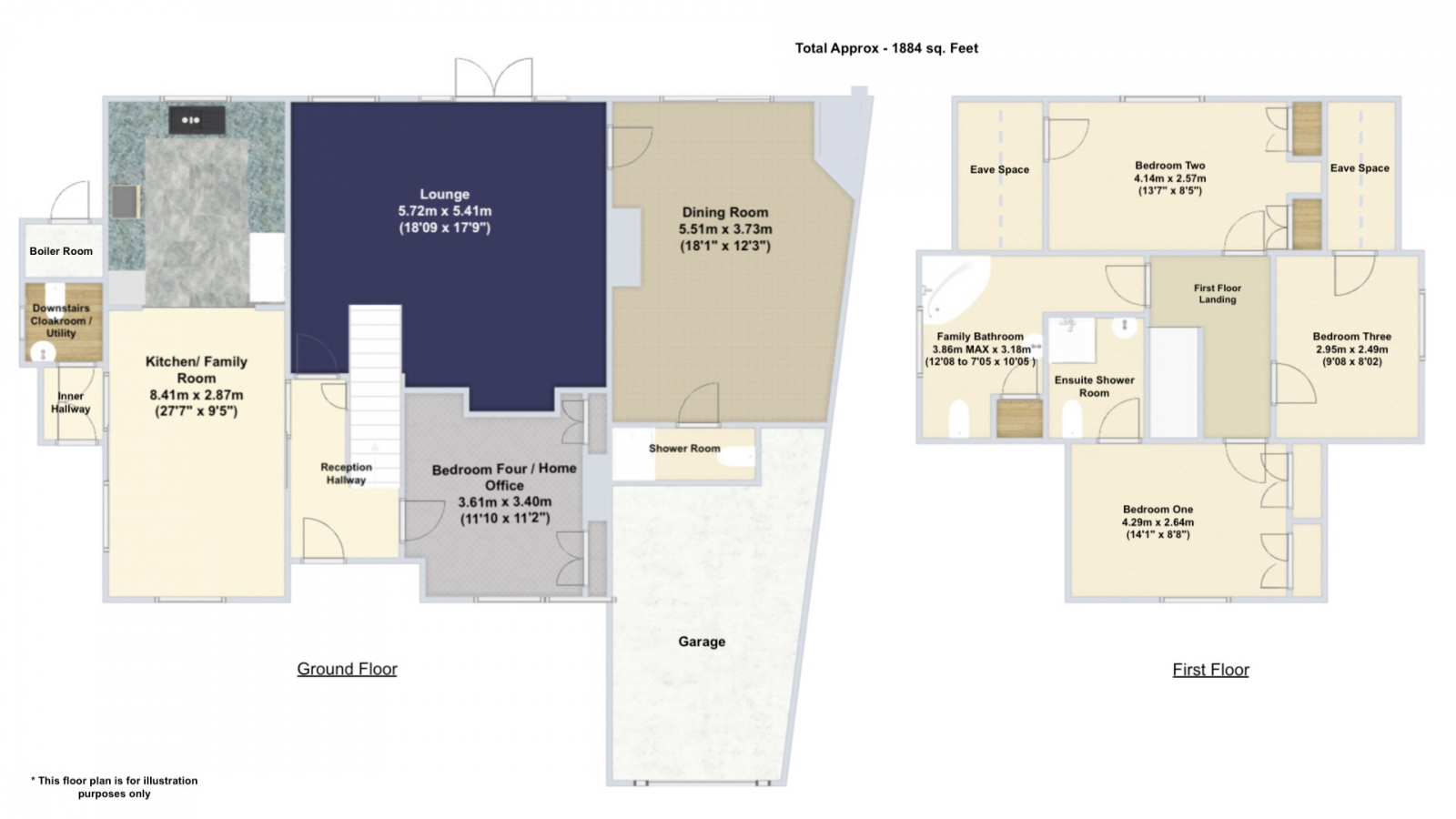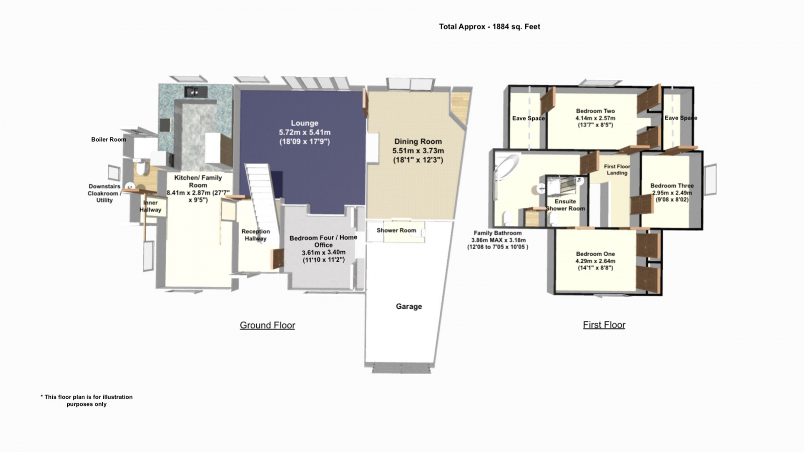 Downstairs Bedroom Four / Home Office 3.61m x 3.40m (11'10 x 11'2") Large double room with wooden double glazed bay window to front elevation. Carpeted throughout with excellent range of fitted wardrobes having an abundance of shelving and hanging rails. Dressing area with rolled top work surface, mirror over and wall lighting. Central ceiling lighting power points and radiator.