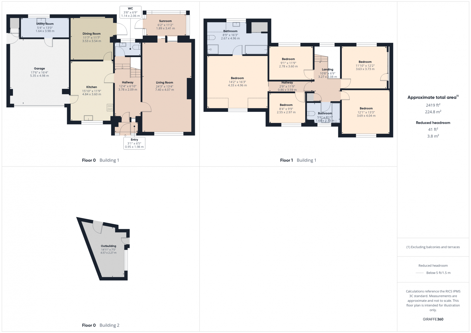 Dining Room 11'7'' x 11'7''Bright and airy with delightful garden views. Sliding patio doors plus an additional glazed wooden side door. Perfect for dinner parties and formal dining. Wooden flooring, two ceiling lights, radiator, and power points.