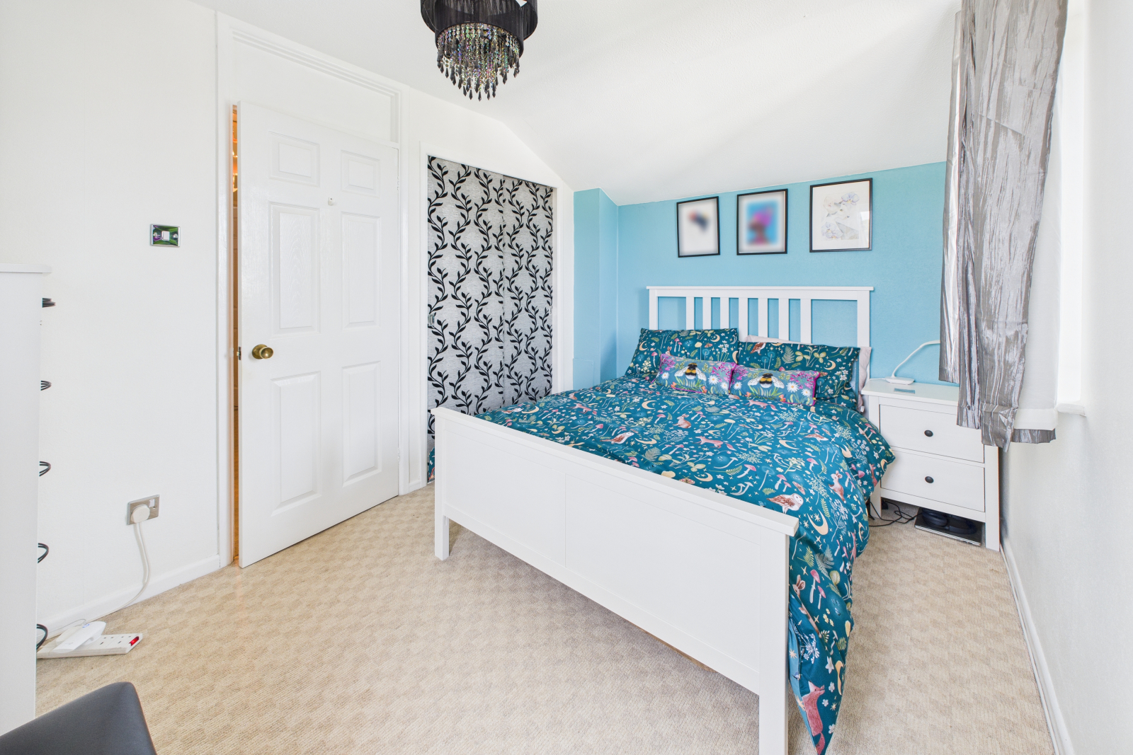 Ground Floor Bedroom 8'9'' x 11'10''A generously sized double bedroom with UPVC double-glazed windows to both the front and side, flooding the space with natural light. Complete with fitted wardrobes, central pendant lighting, carpeted flooring, and power points.