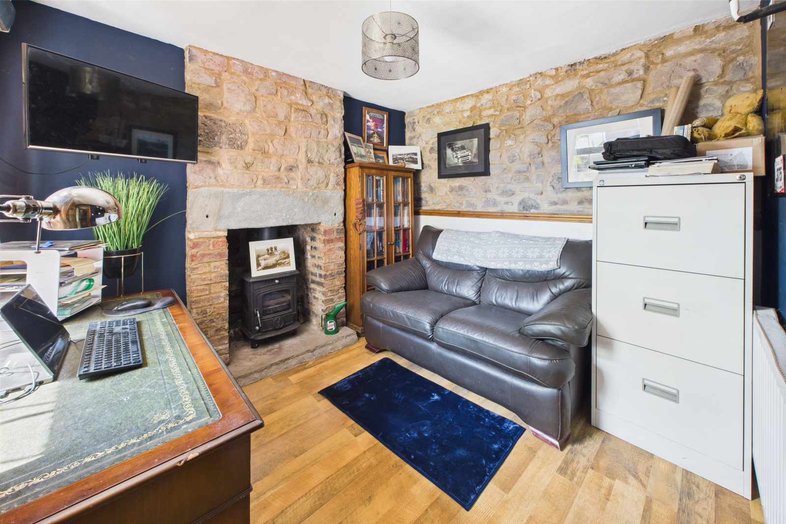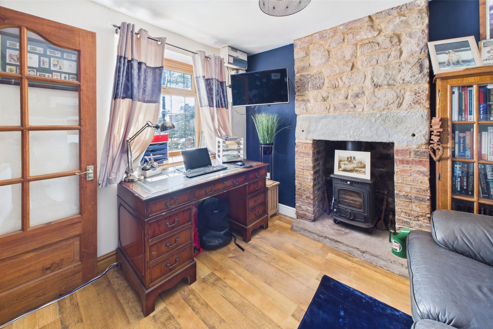 A cosy additional reception space with a UPVC double-glazed window overlooking the courtyard garden. Charming feature fireplace with woodburner with tile effect wooden flooring throughout. Perfect as a home office or playroom with a radiator and power points.