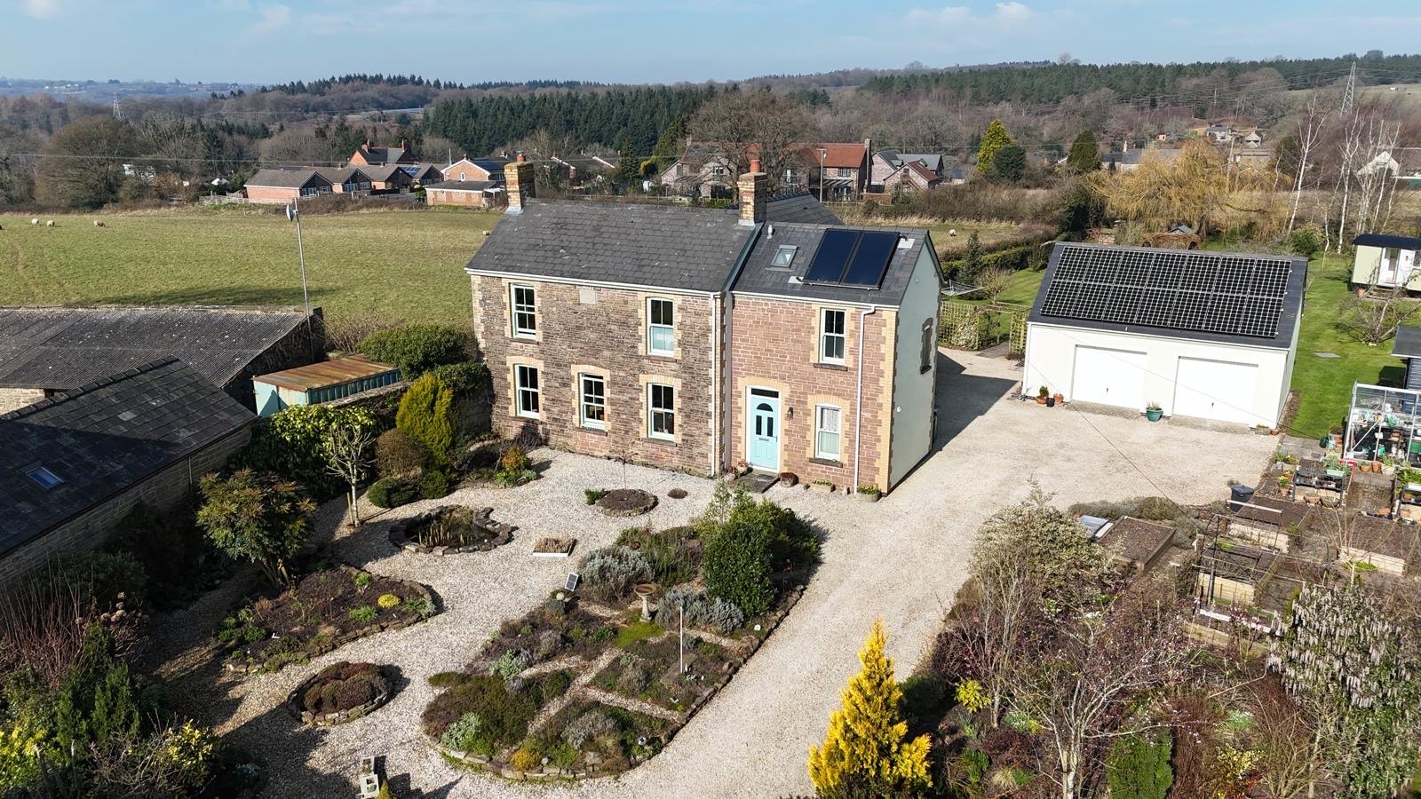 This magnificent home is a masterclass in elegance, comfort, and sustainability, seamlessly blending contemporary luxury with timeless countryside charm. Thoughtfully designed and beautifully appointed, it boasts spacious and light-filled living areas, a stunning vaulted library, and a breathtaking kitchen/diner that serves as the heart of the home. Underfloor heating, premium finishes, and exquisite architectural details elevate every space. The enchanting gardens extend the living experience outdoors, featuring a wildflower meadow, mature trees, a log cabin, and a charming courtyard with raised flower beds. Practicality meets charm with a detached double garage, a spacious greenhouse, a shepherd’s hut, and multiple outbuildings for storage and hobbies. With panoramic views towards the River Severn, cutting-edge eco-friendly features, and an atmosphere of pure tranquility, this home offers an unparalleled lifestyle of refined rural living.