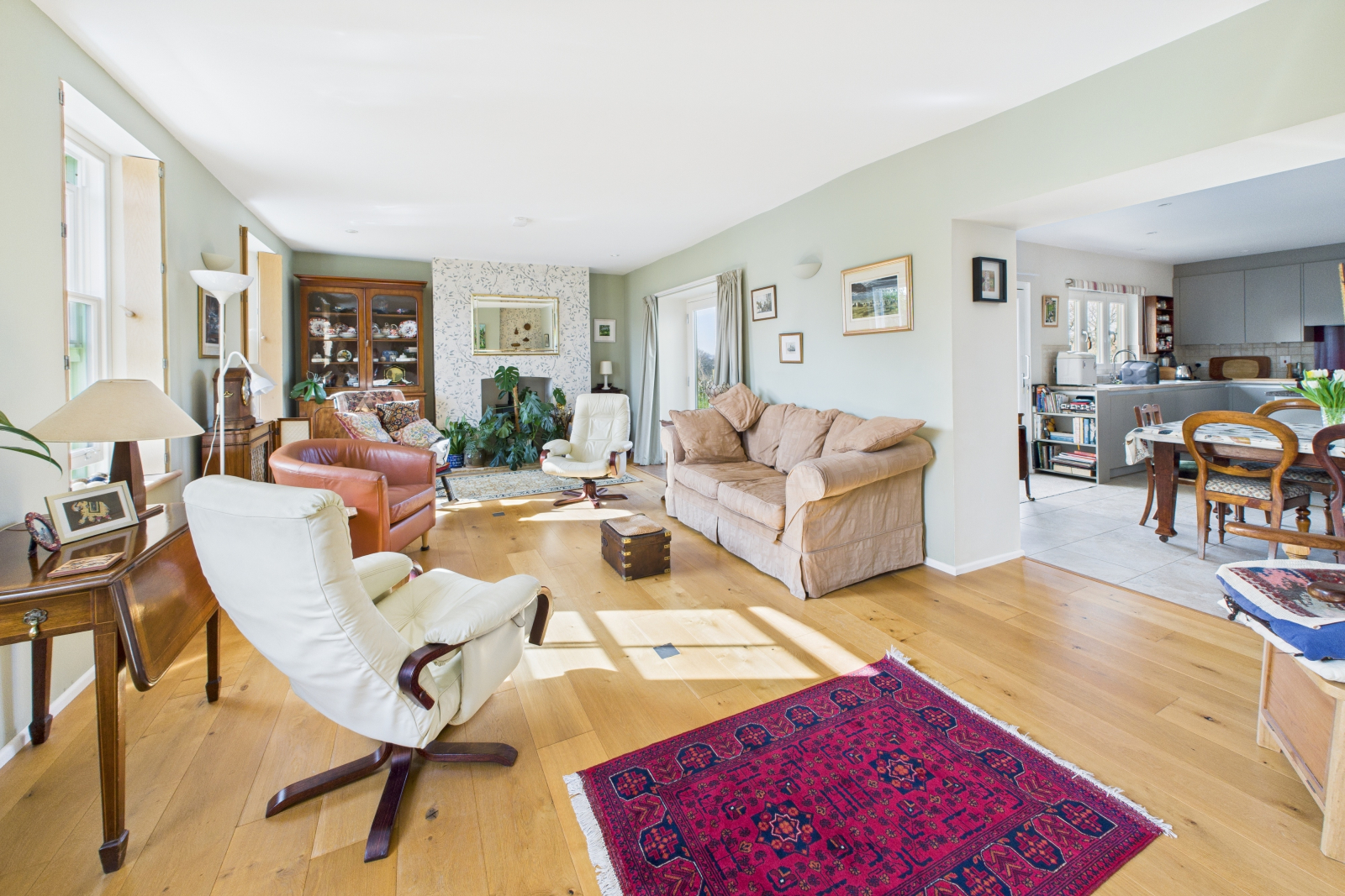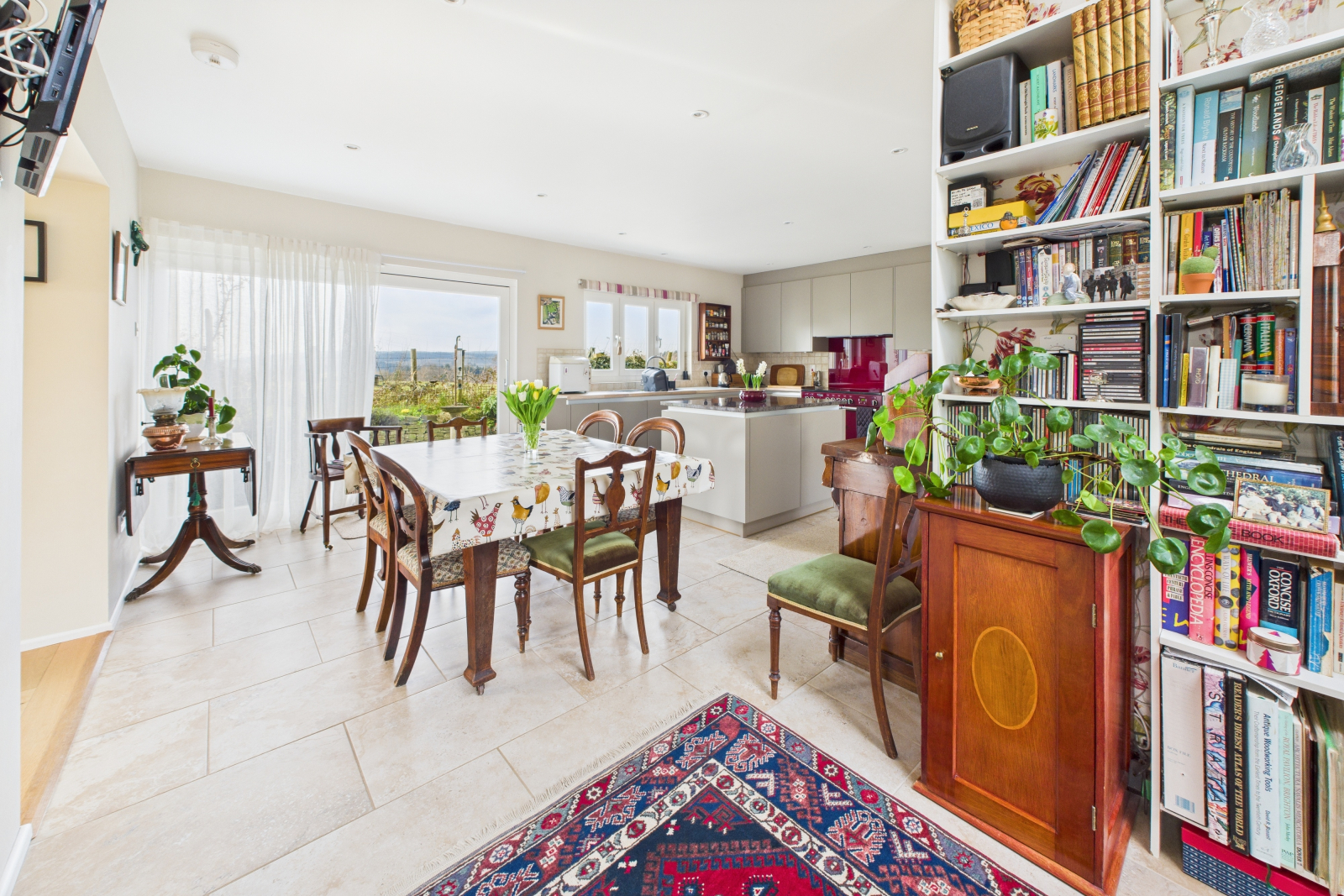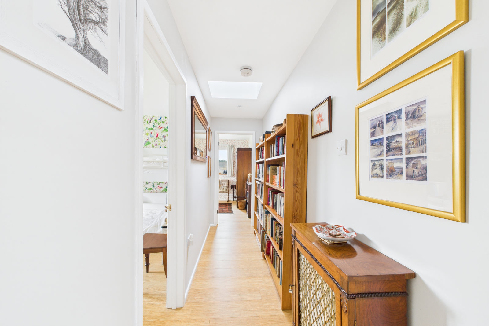 A truly remarkable space designed to inspire, featuring a breathtaking vaulted ceiling and a large Velux window that bathes the room in natural light. The handcrafted wooden banister elegantly frames the carpeted stairwell leading to the first floor, while a generous understairs storage area provides practical solutions. Sumptuous ceramic tiled flooring, enhanced by underfloor heating, exudes warmth and sophistication. Gigaclear internet connectivity ensures seamless digital access, and a charming bookcase adds character. The UPVC double-glazed windows frame delightful garden views, making this a perfect retreat. Seamlessly open to: