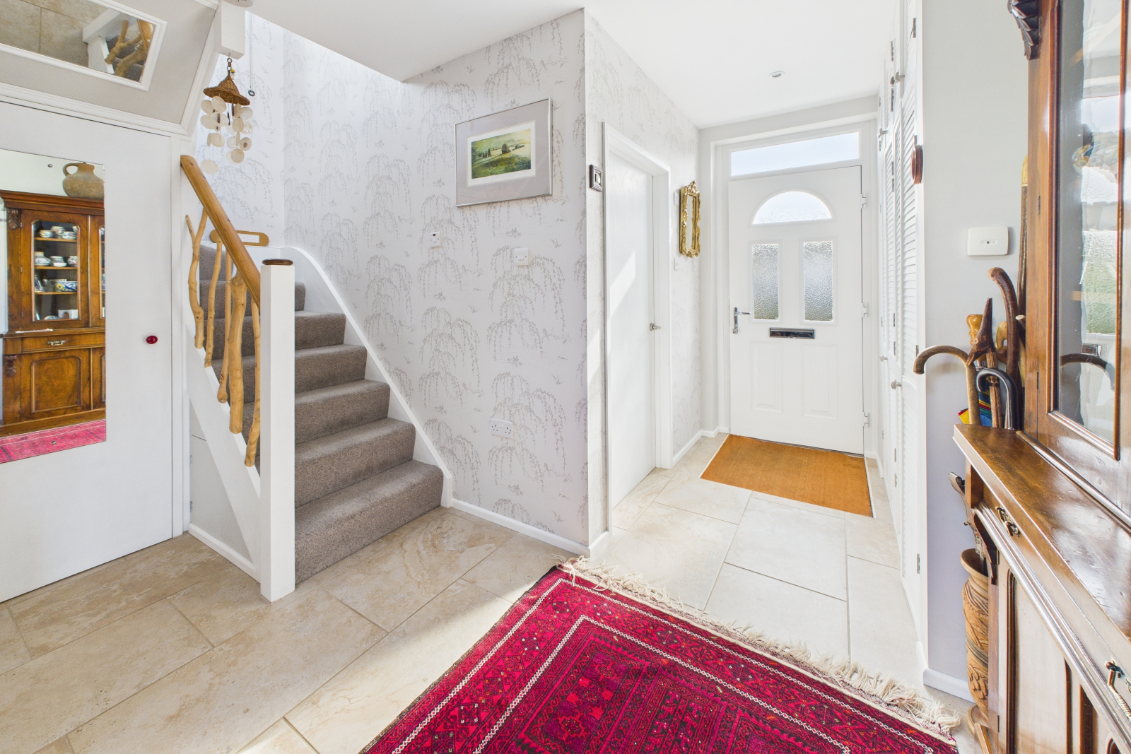 Step through the striking composite door with inset obscured glazing into an inviting and beautifully designed entrance. The elegant hallway boasts luxurious choir matting and ceramic tiled flooring, creating a sophisticated first impression. A spacious double-fitted storage cupboard offers an abundance of shelving and hanging space, ensuring a seamless blend of style and practicality. Soft spot lighting and underfloor heating add to the warm, welcoming ambiance. Flowing effortlessly into the Library/Reception Area.