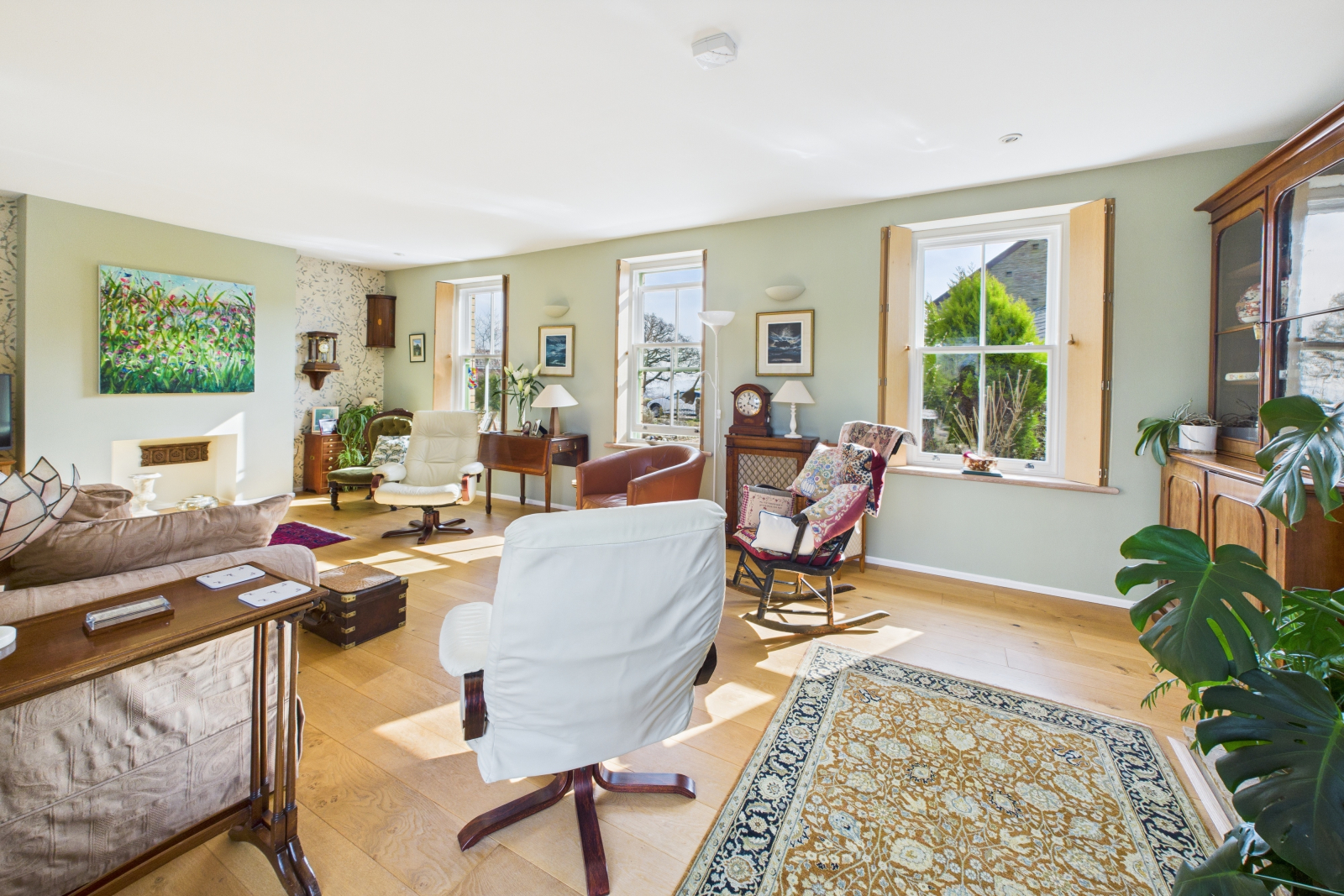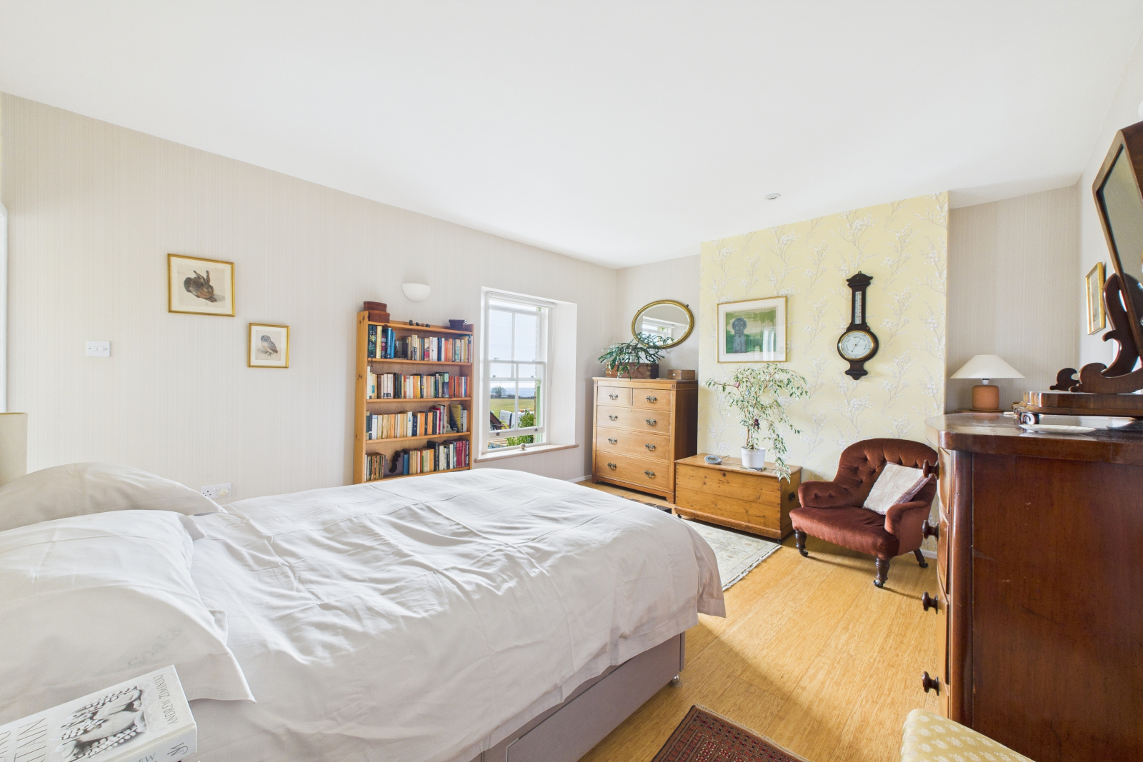 A delightful retreat with dual-aspect UPVC double-glazed windows framing idyllic garden and countryside views. Warm wooden heated flooring, stylish feature wall lighting, and an abundance of power points make this an inviting and tranquil space, perfect for family or guests.