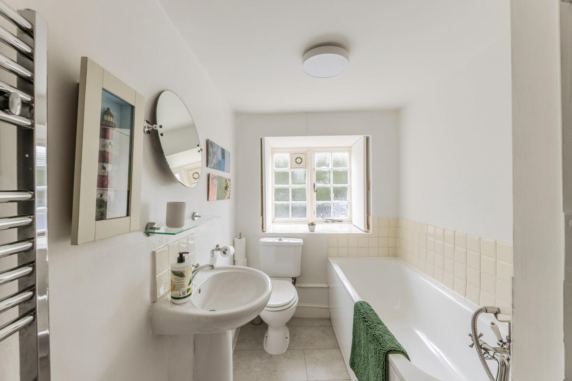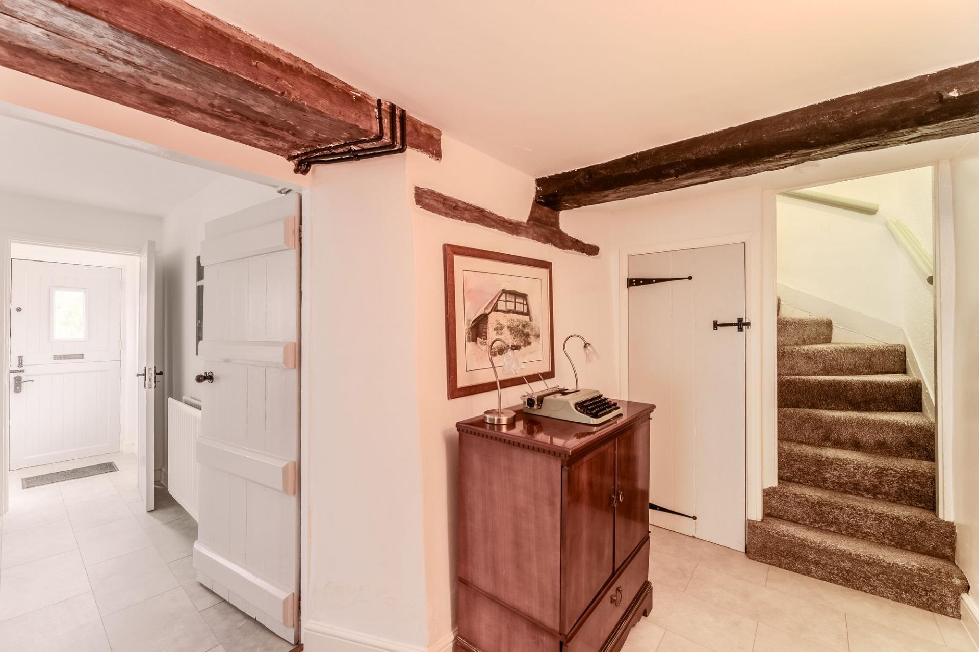 Upstairs, there are two well-proportioned double bedrooms, both full of character with exposed beams and traditional shutters. A second bathroom serves this floor, adding convenience and comfort.