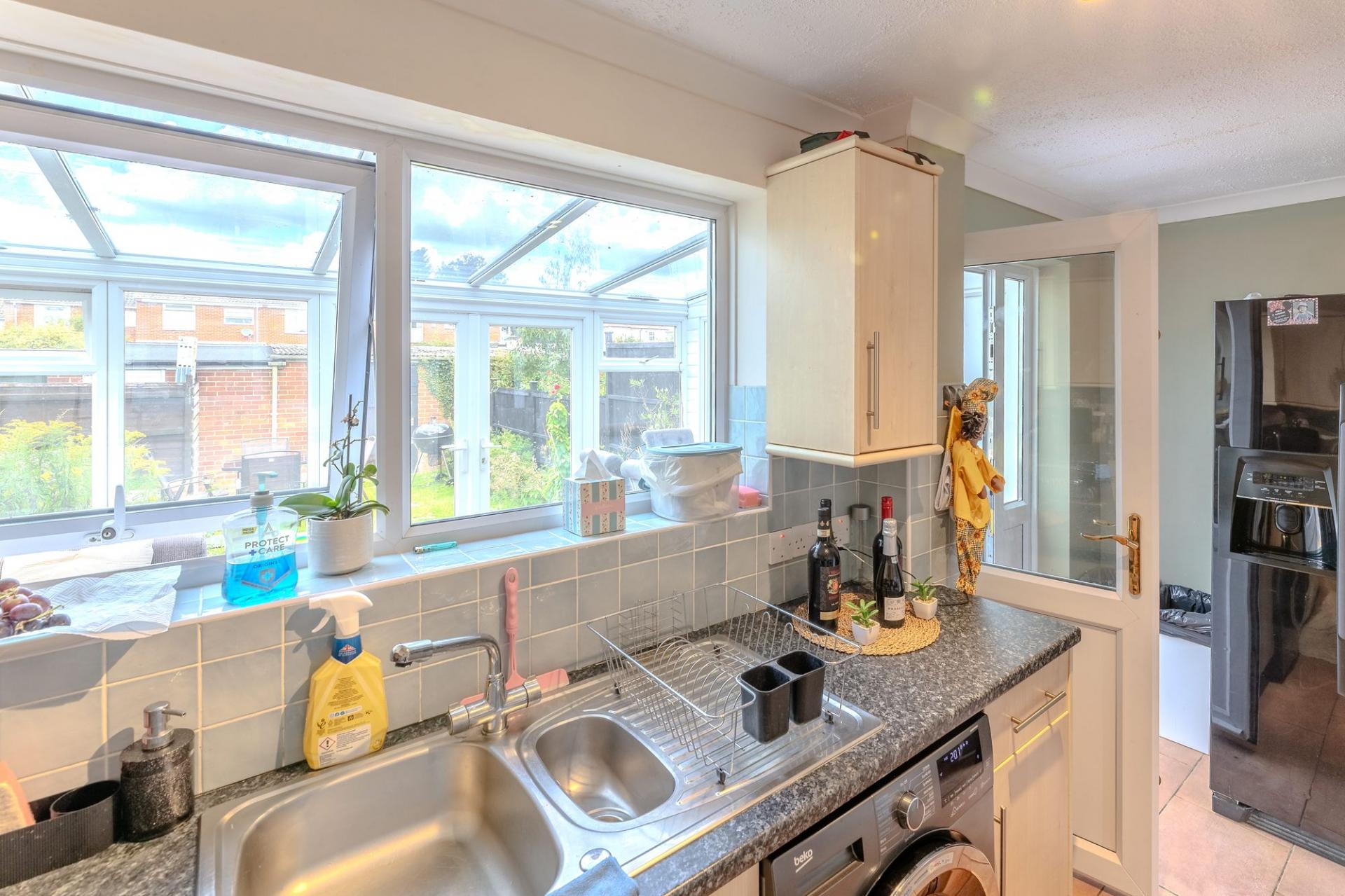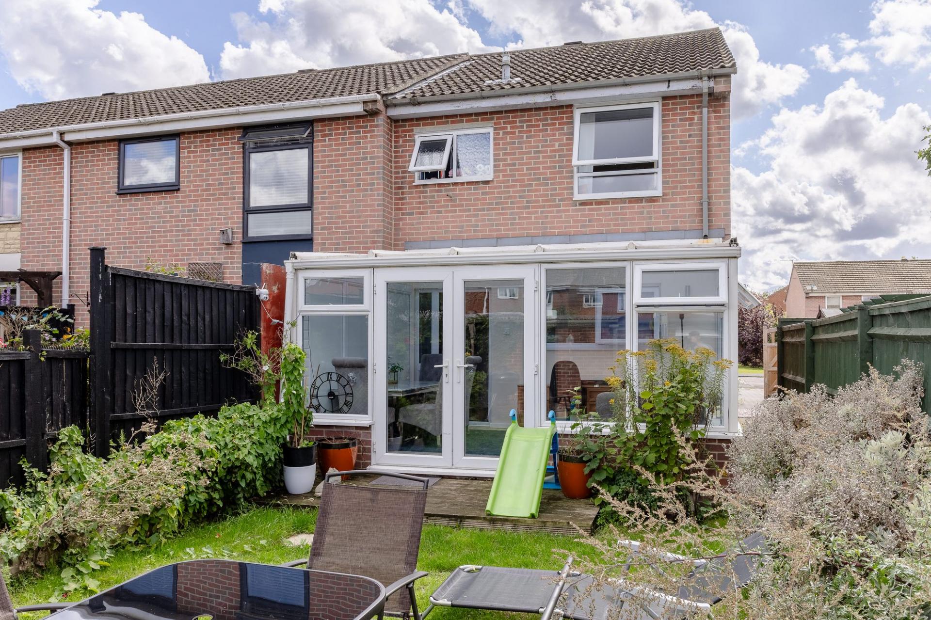 On the ground floor, the entrance porch leads into a bright and welcoming sitting room, while the kitchen sits to the rear of the property with direct access to a spacious conservatory. This versatile room is ideal as a dining or family space and enjoys views over the garden. Upstairs, there are three bedrooms, two of which are doubles, along with a modern family bathroom.