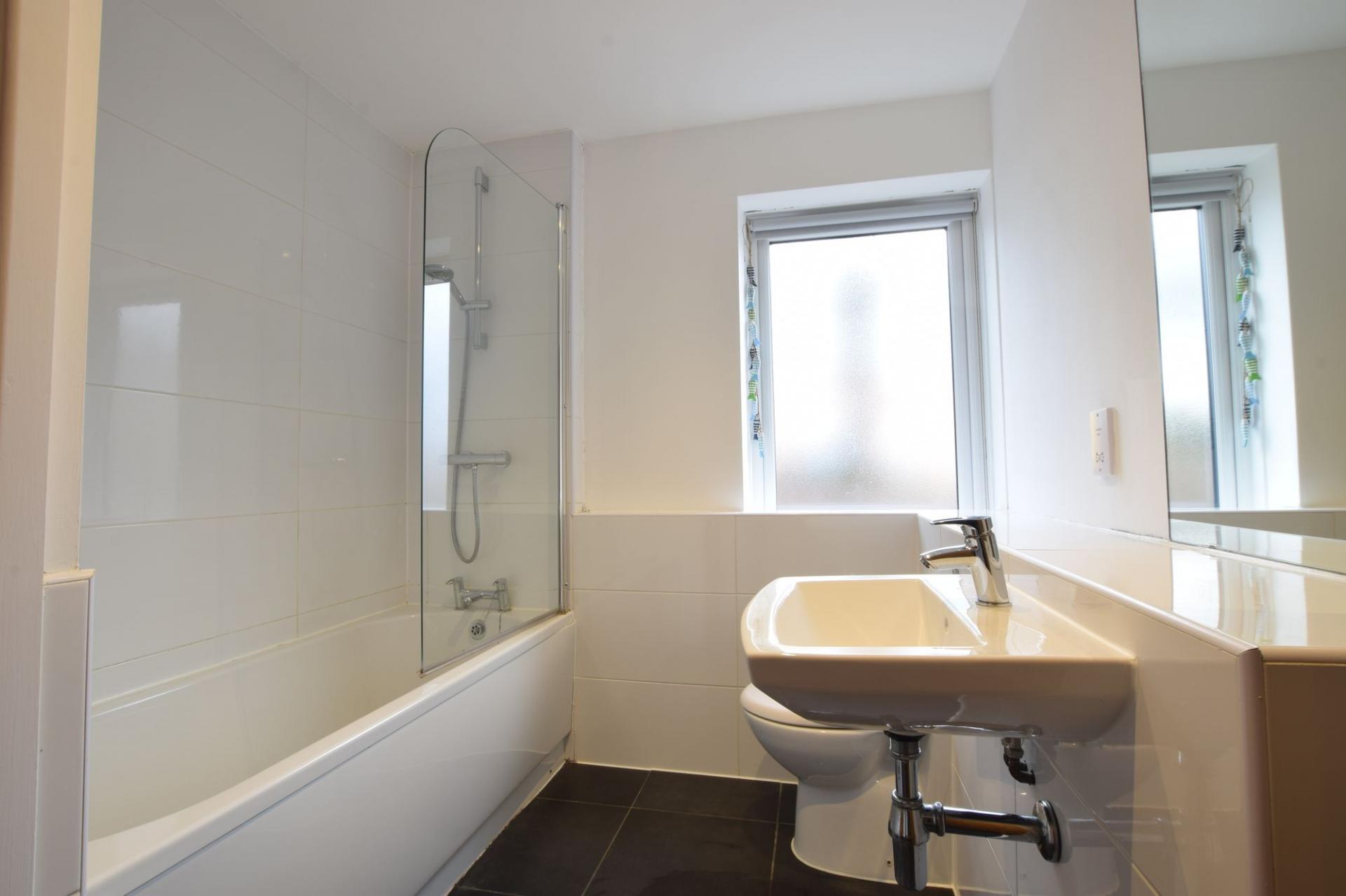 There are two well‑proportioned bedrooms, including one generous double and a versatile single room suitable for guests, a home office, or additional storage. A stylish family bathroom completes the internal layout, finished with contemporary fittings and neutral décor.