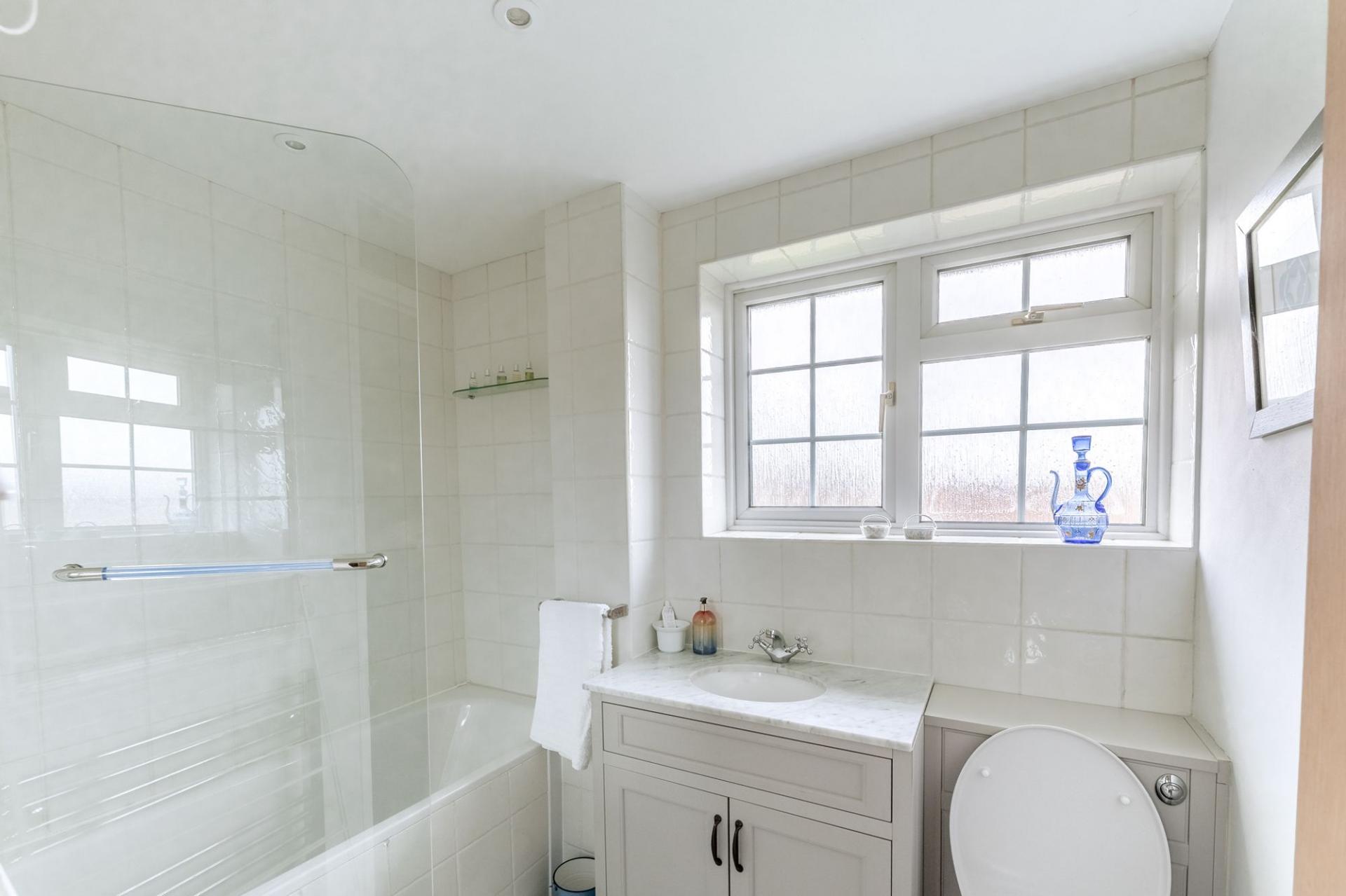 At the rear of the property is a beautifully refurbished, modern and bright kitchen, thoughtfully upgraded by the current owners. The space features a charming bay window and a door opening directly onto the garden, creating a seamless connection between indoor and outdoor living. The kitchen is equipped with high‑quality Neff appliances, including an integrated fridge and freezer, a built‑in oven, and a combi oven, offering both convenience and a premium finish. Every detail has been carefully considered.
