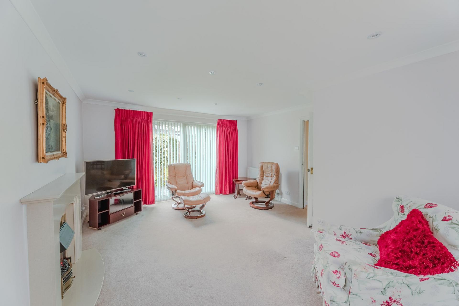 To the left, the separate living room is a bright and inviting space, featuring a large bay window, an electric fire perfect for cosy winter evenings and sliding pat...